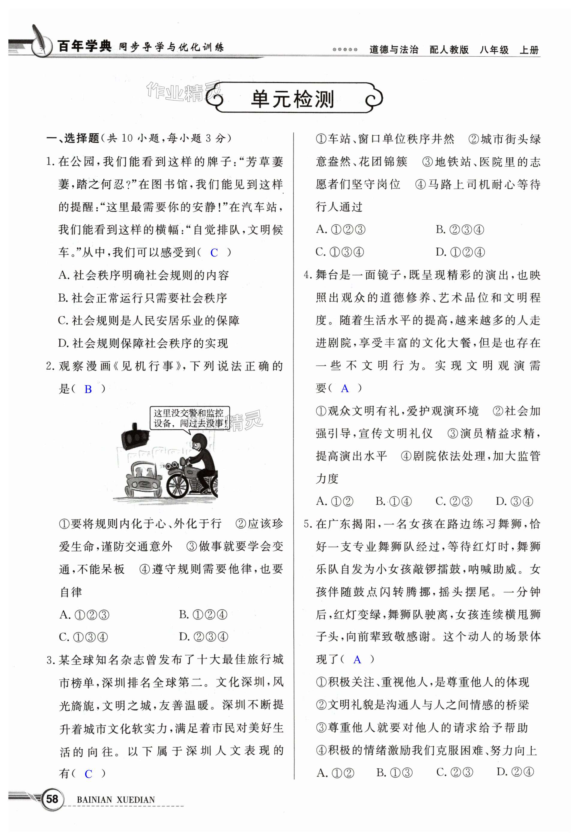 注:目前有些书本章节名称可能整理的还不是很完善,但都是按照顺序排列的,请同学们按照顺序仔细查找。练习册 2024年同步导学与优化训练八年级道德与法治上册人教版 答案主要是用来给同学们做完题方便对答案用的,请勿直接抄袭。