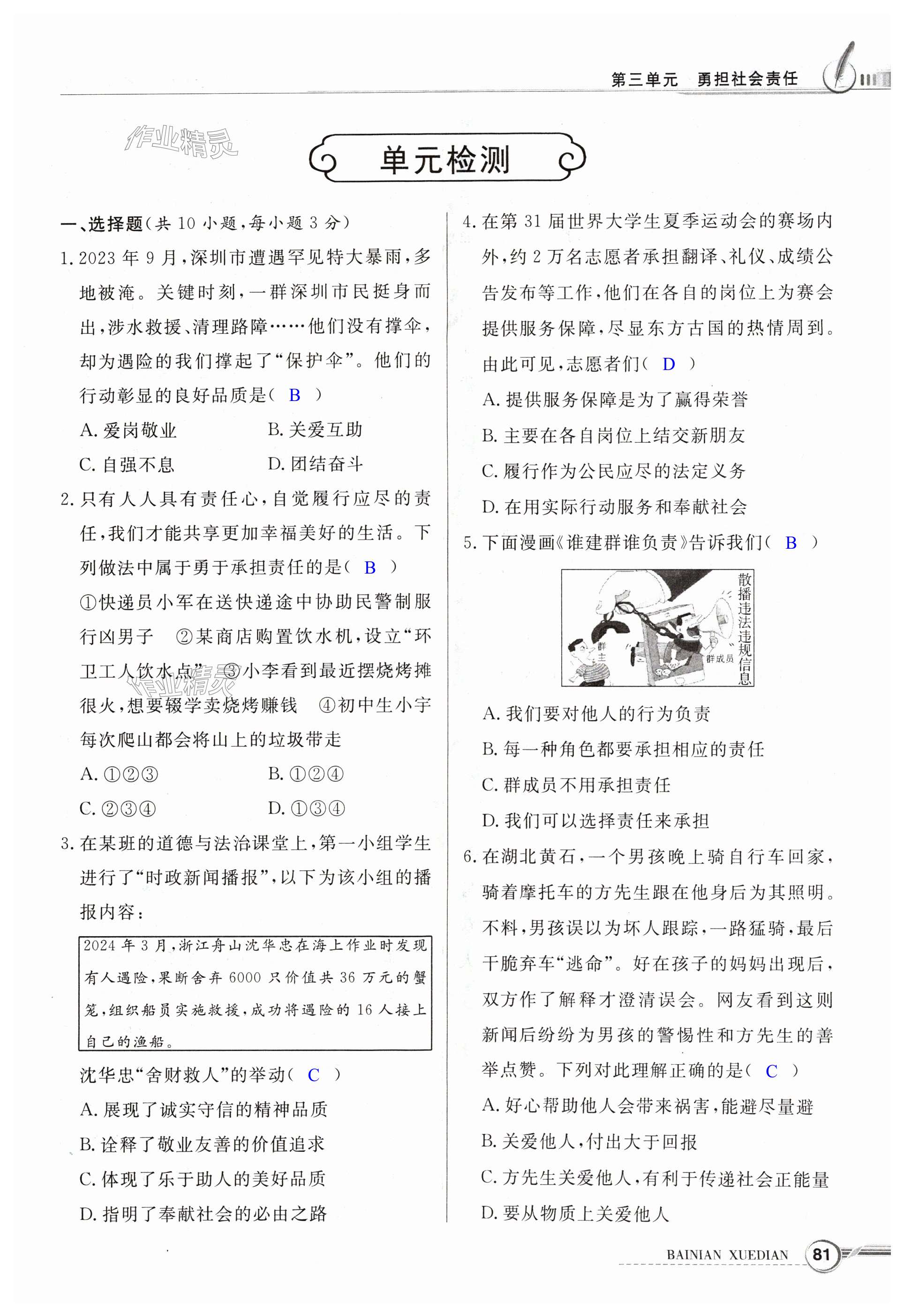 注:目前有些书本章节名称可能整理的还不是很完善,但都是按照顺序排列的,请同学们按照顺序仔细查找。练习册 2024年同步导学与优化训练八年级道德与法治上册人教版 答案主要是用来给同学们做完题方便对答案用的,请勿直接抄袭。