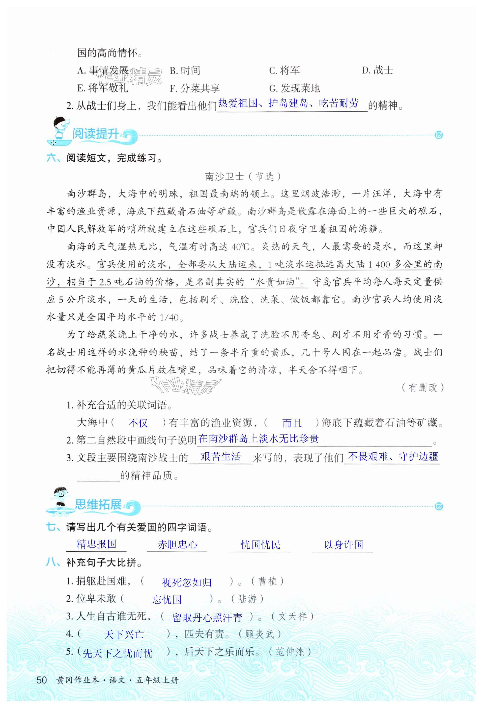 注:目前有些书本章节名称可能整理的还不是很完善,但都是按照顺序排列的,请同学们按照顺序仔细查找。练习册 2024年黄冈作业本武汉大学出版社五年级语文上册人教版 答案主要是用来给同学们做完题方便对答案用的,请勿直接抄袭。