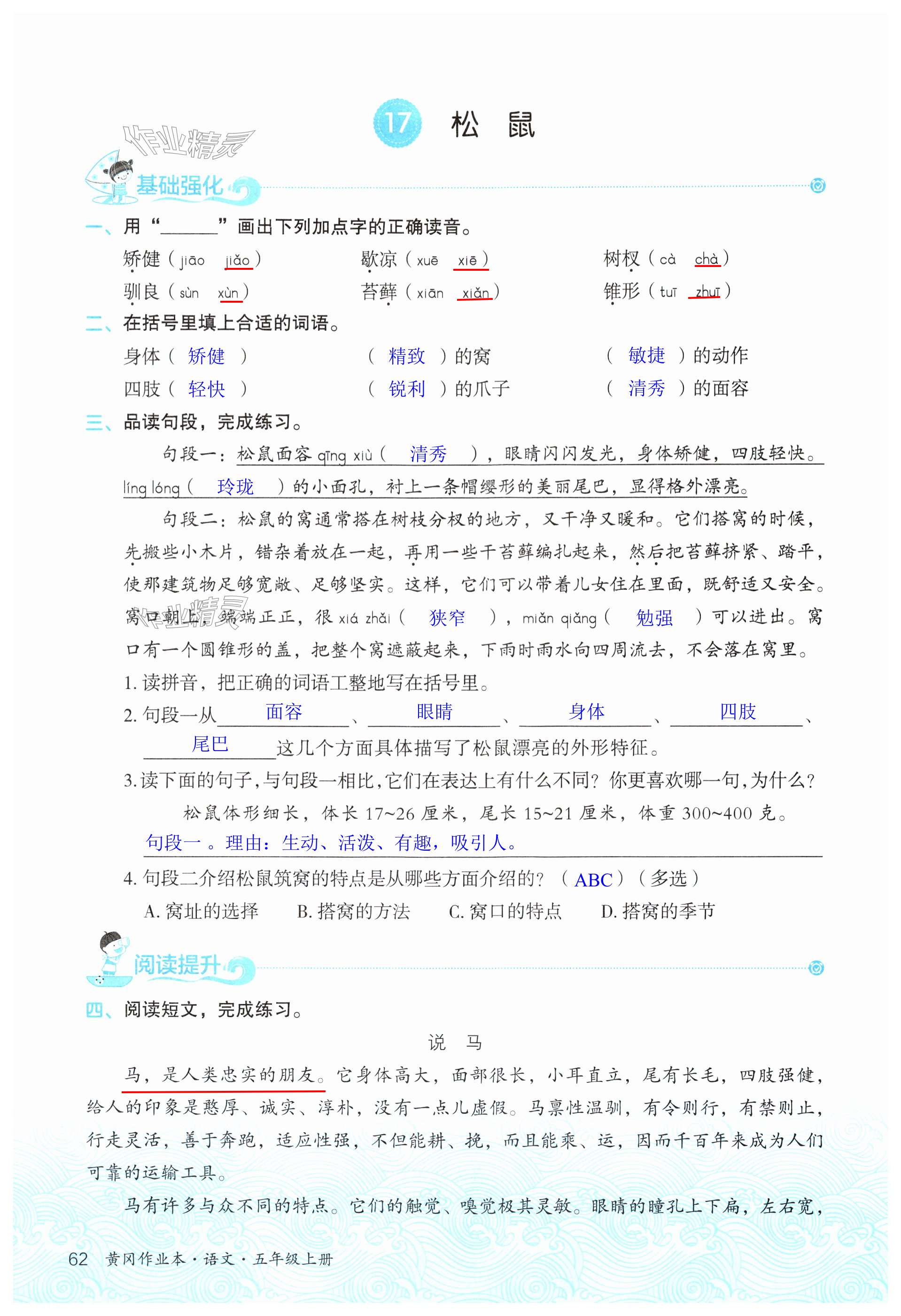 注:目前有些书本章节名称可能整理的还不是很完善,但都是按照顺序排列的,请同学们按照顺序仔细查找。练习册 2024年黄冈作业本武汉大学出版社五年级语文上册人教版 答案主要是用来给同学们做完题方便对答案用的,请勿直接抄袭。
