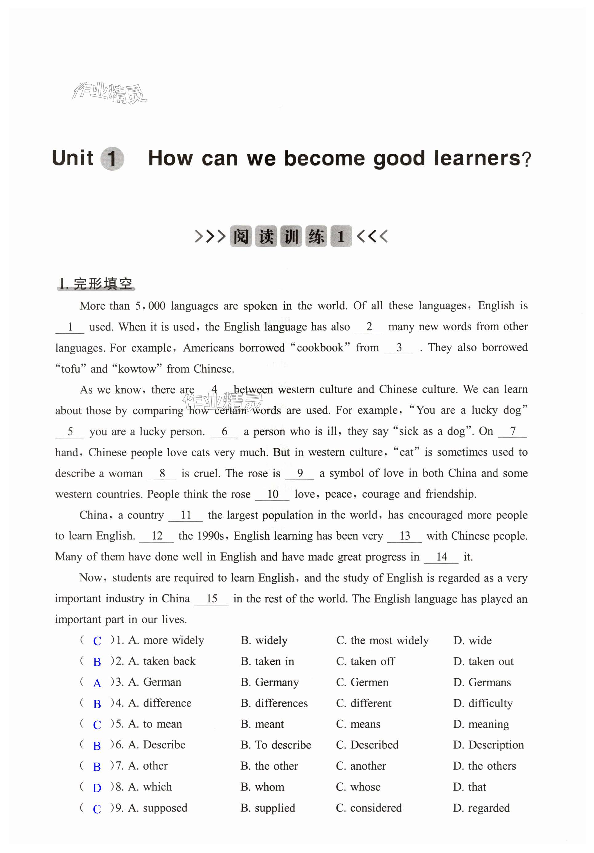 注:目前有些书本章节名称可能整理的还不是很完善,但都是按照顺序排列的,请同学们按照顺序仔细查找。练习册 2024年读无忧英语阅读训练九年级上册人教版 答案主要是用来给同学们做完题方便对答案用的,请勿直接抄袭。