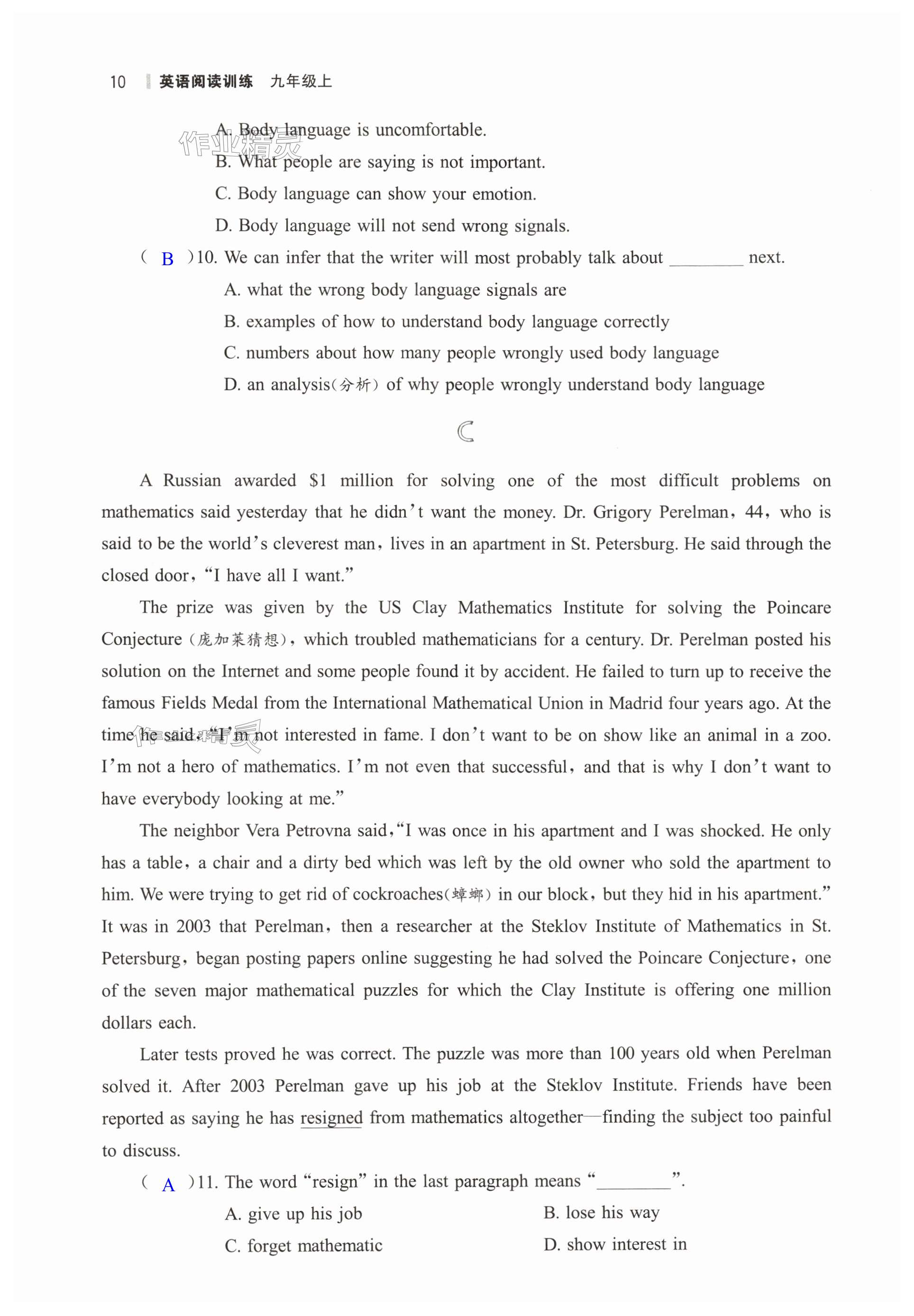 注:目前有些书本章节名称可能整理的还不是很完善,但都是按照顺序排列的,请同学们按照顺序仔细查找。练习册 2024年读无忧英语阅读训练九年级上册人教版 答案主要是用来给同学们做完题方便对答案用的,请勿直接抄袭。