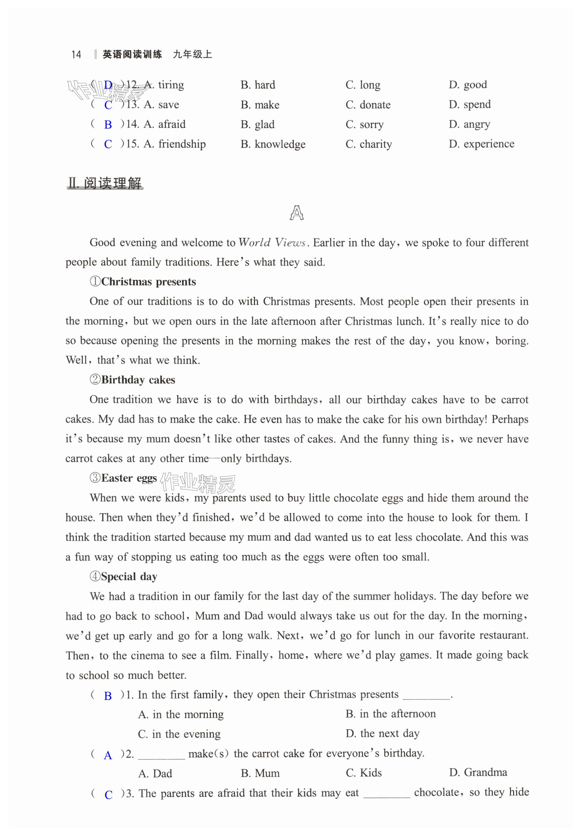 注:目前有些书本章节名称可能整理的还不是很完善,但都是按照顺序排列的,请同学们按照顺序仔细查找。练习册 2024年读无忧英语阅读训练九年级上册人教版 答案主要是用来给同学们做完题方便对答案用的,请勿直接抄袭。