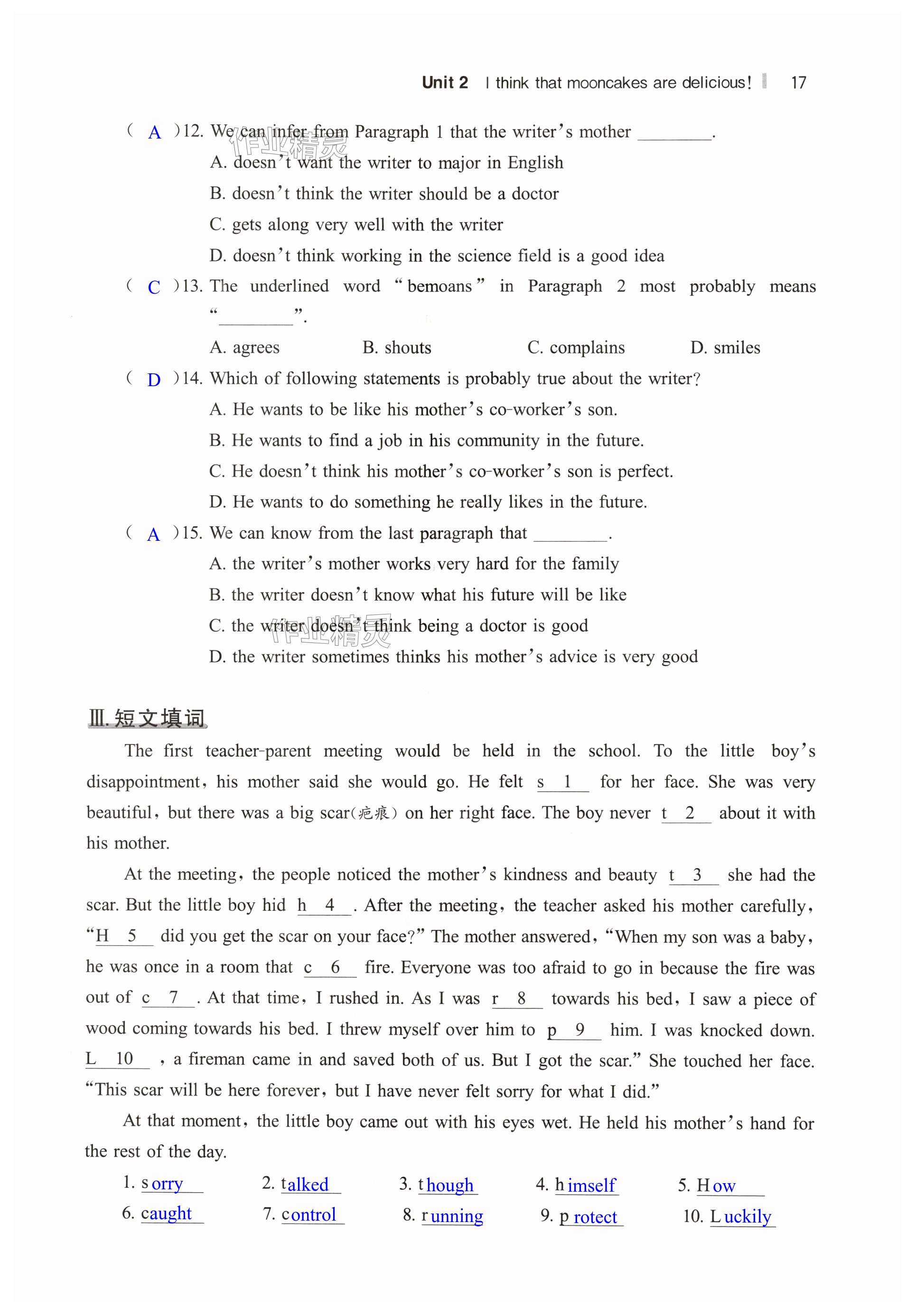 注:目前有些书本章节名称可能整理的还不是很完善,但都是按照顺序排列的,请同学们按照顺序仔细查找。练习册 2024年读无忧英语阅读训练九年级上册人教版 答案主要是用来给同学们做完题方便对答案用的,请勿直接抄袭。