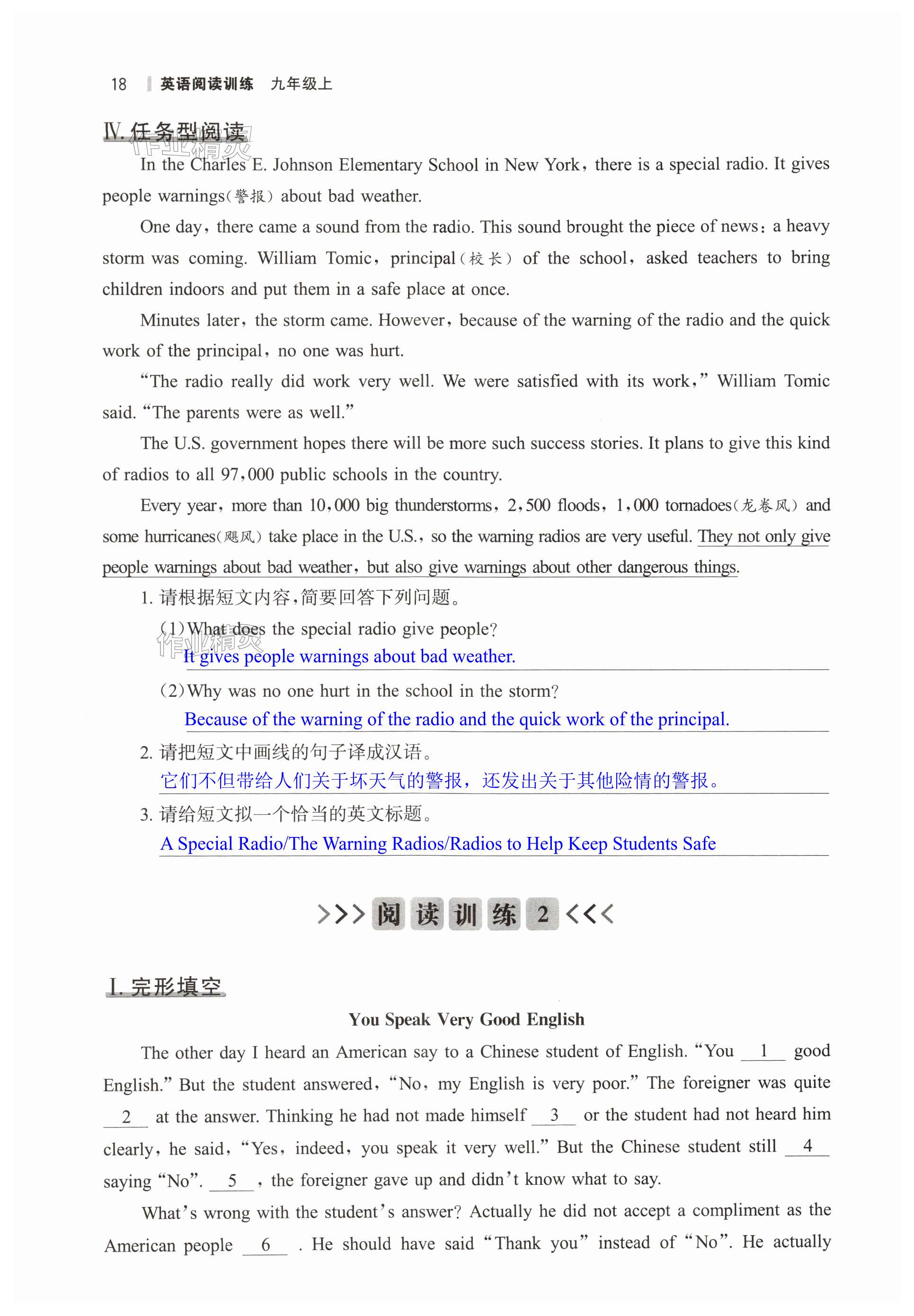 注:目前有些书本章节名称可能整理的还不是很完善,但都是按照顺序排列的,请同学们按照顺序仔细查找。练习册 2024年读无忧英语阅读训练九年级上册人教版 答案主要是用来给同学们做完题方便对答案用的,请勿直接抄袭。