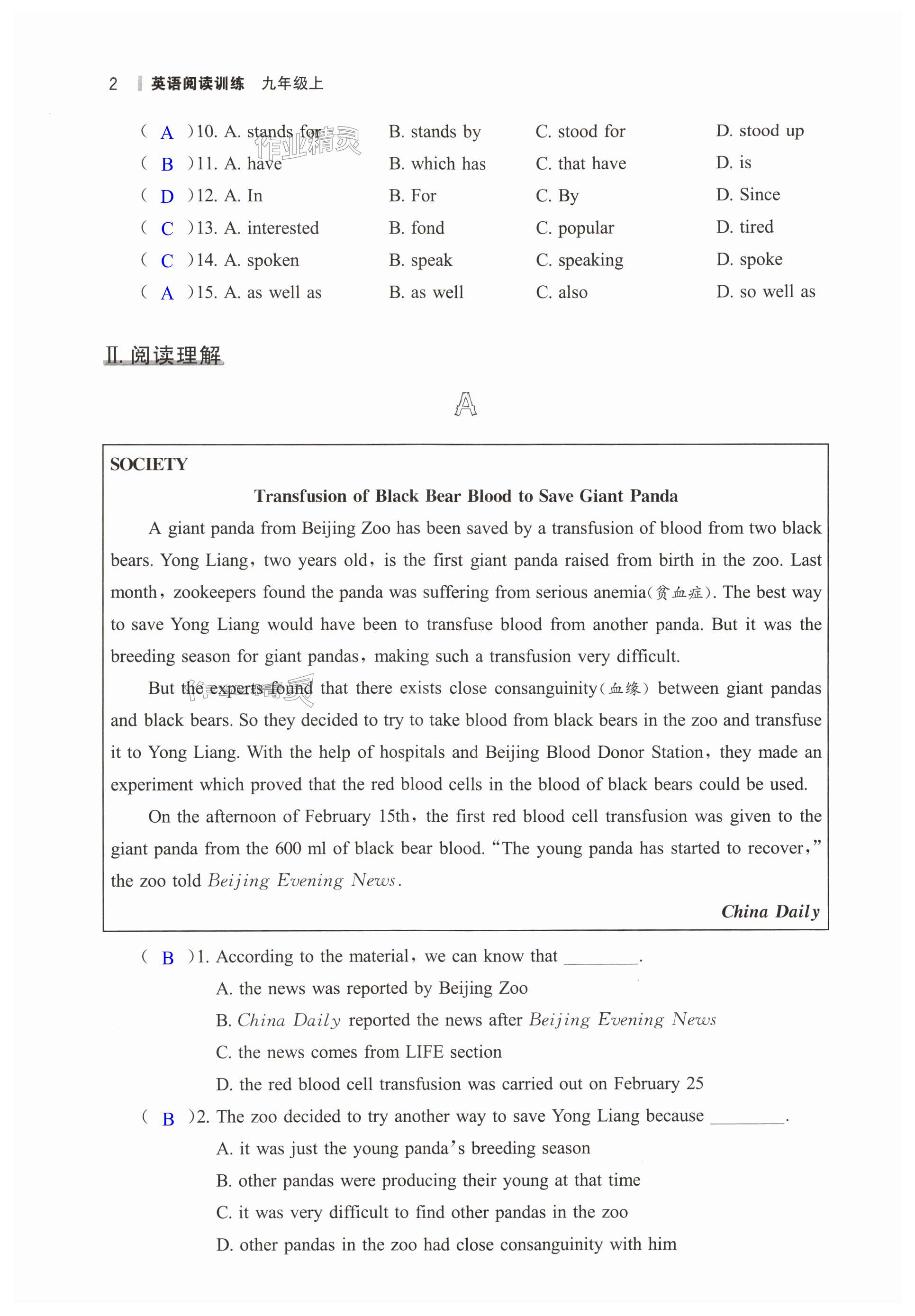 注:目前有些书本章节名称可能整理的还不是很完善,但都是按照顺序排列的,请同学们按照顺序仔细查找。练习册 2024年读无忧英语阅读训练九年级上册人教版 答案主要是用来给同学们做完题方便对答案用的,请勿直接抄袭。