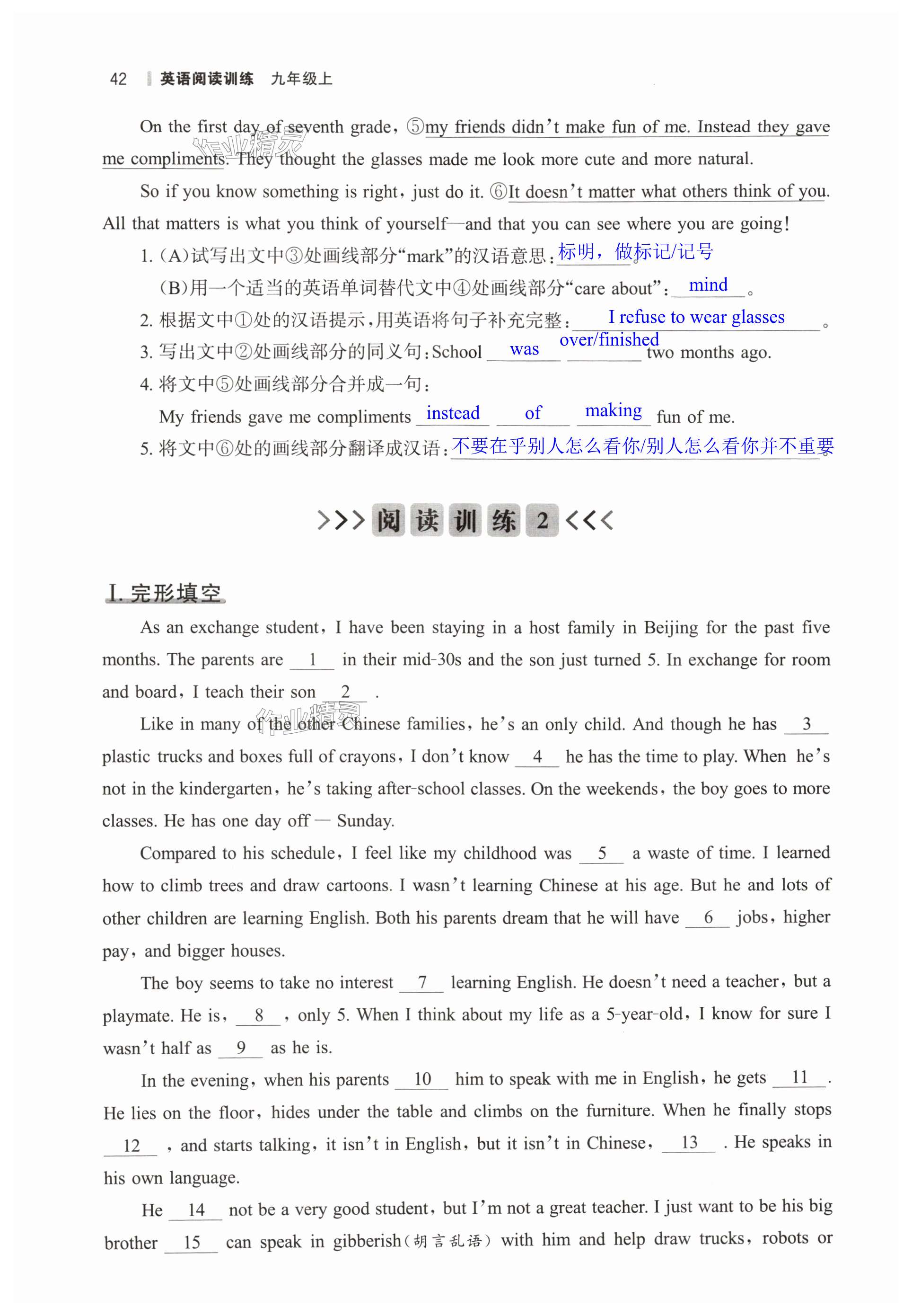 注:目前有些书本章节名称可能整理的还不是很完善,但都是按照顺序排列的,请同学们按照顺序仔细查找。练习册 2024年读无忧英语阅读训练九年级上册人教版 答案主要是用来给同学们做完题方便对答案用的,请勿直接抄袭。