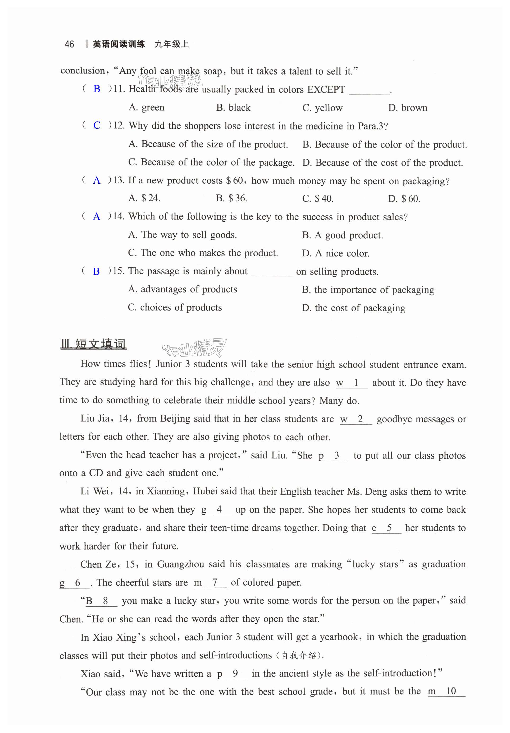 注:目前有些书本章节名称可能整理的还不是很完善,但都是按照顺序排列的,请同学们按照顺序仔细查找。练习册 2024年读无忧英语阅读训练九年级上册人教版 答案主要是用来给同学们做完题方便对答案用的,请勿直接抄袭。