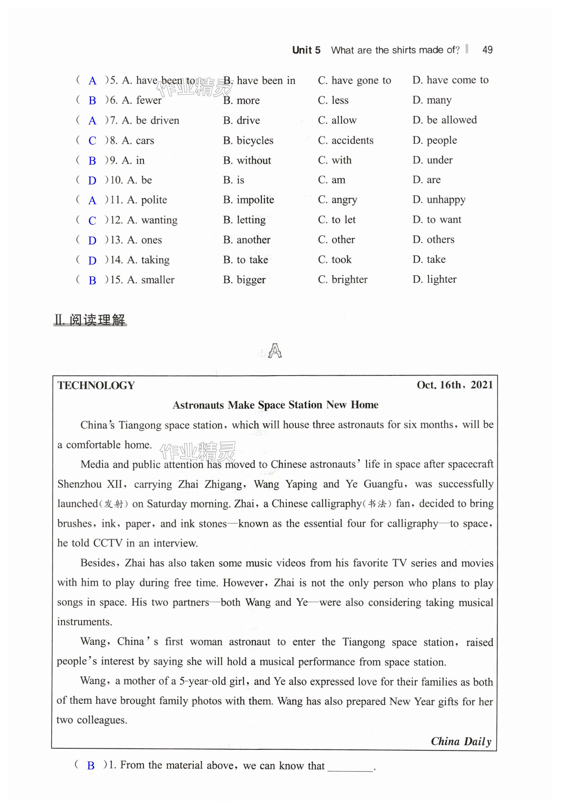 注:目前有些书本章节名称可能整理的还不是很完善,但都是按照顺序排列的,请同学们按照顺序仔细查找。练习册 2024年读无忧英语阅读训练九年级上册人教版 答案主要是用来给同学们做完题方便对答案用的,请勿直接抄袭。
