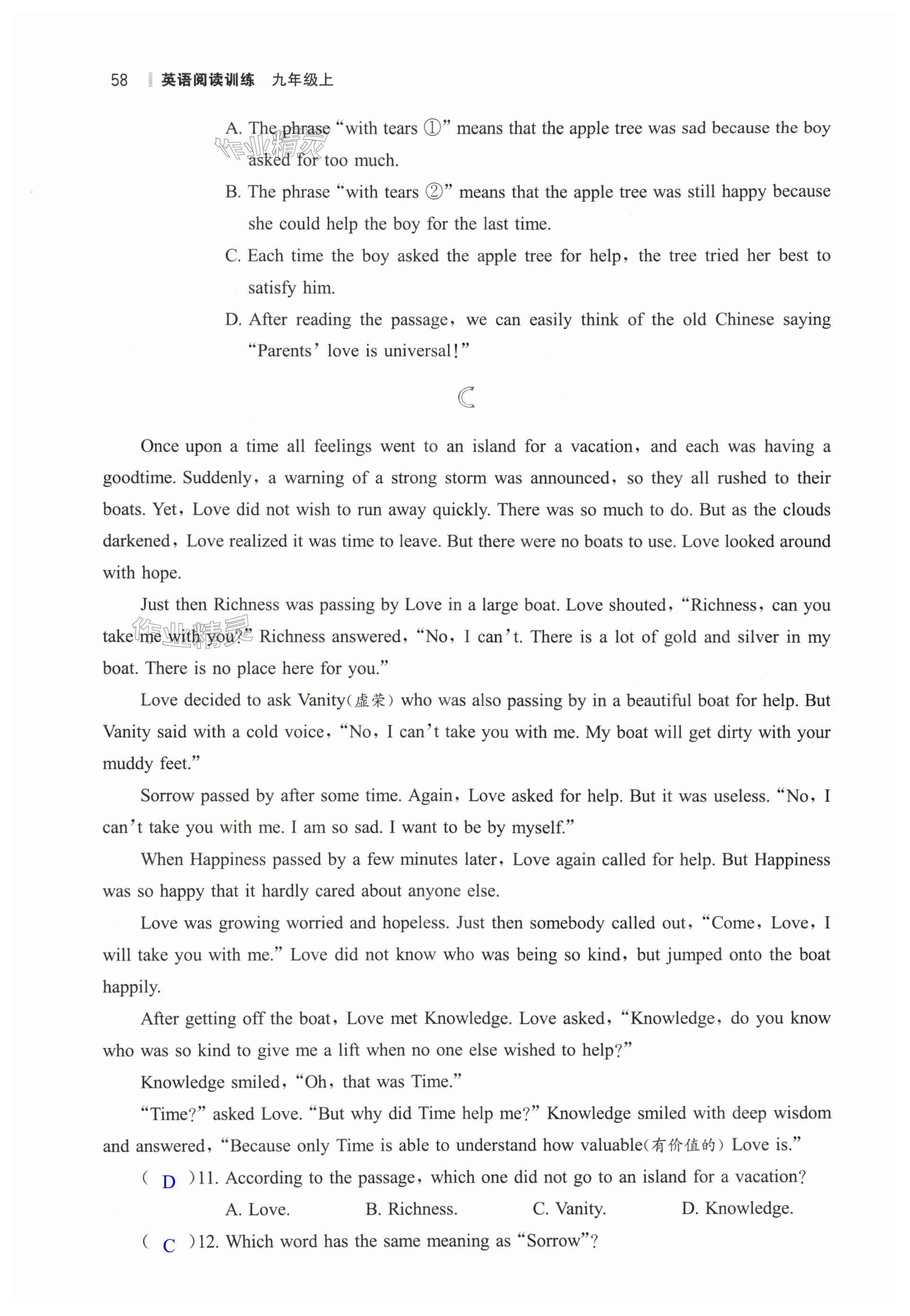注:目前有些书本章节名称可能整理的还不是很完善,但都是按照顺序排列的,请同学们按照顺序仔细查找。练习册 2024年读无忧英语阅读训练九年级上册人教版 答案主要是用来给同学们做完题方便对答案用的,请勿直接抄袭。