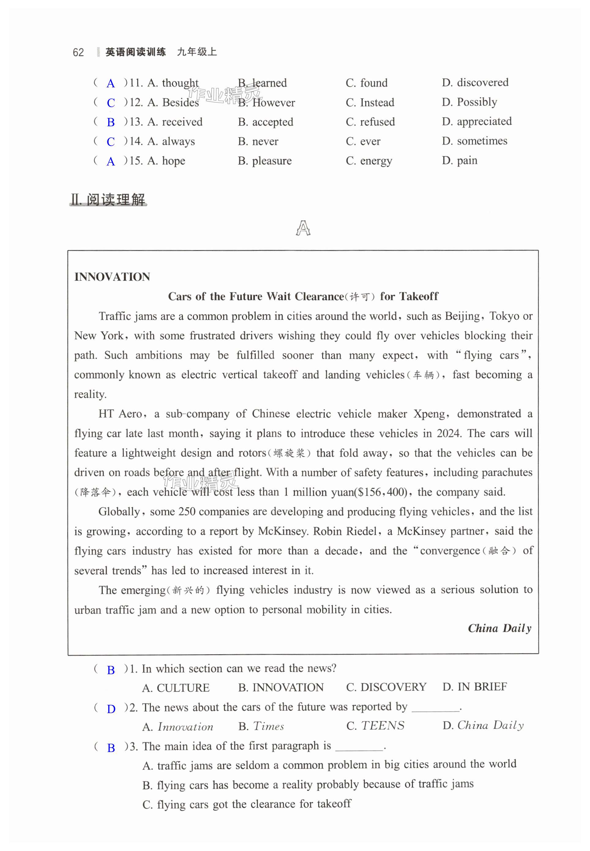 注:目前有些书本章节名称可能整理的还不是很完善,但都是按照顺序排列的,请同学们按照顺序仔细查找。练习册 2024年读无忧英语阅读训练九年级上册人教版 答案主要是用来给同学们做完题方便对答案用的,请勿直接抄袭。