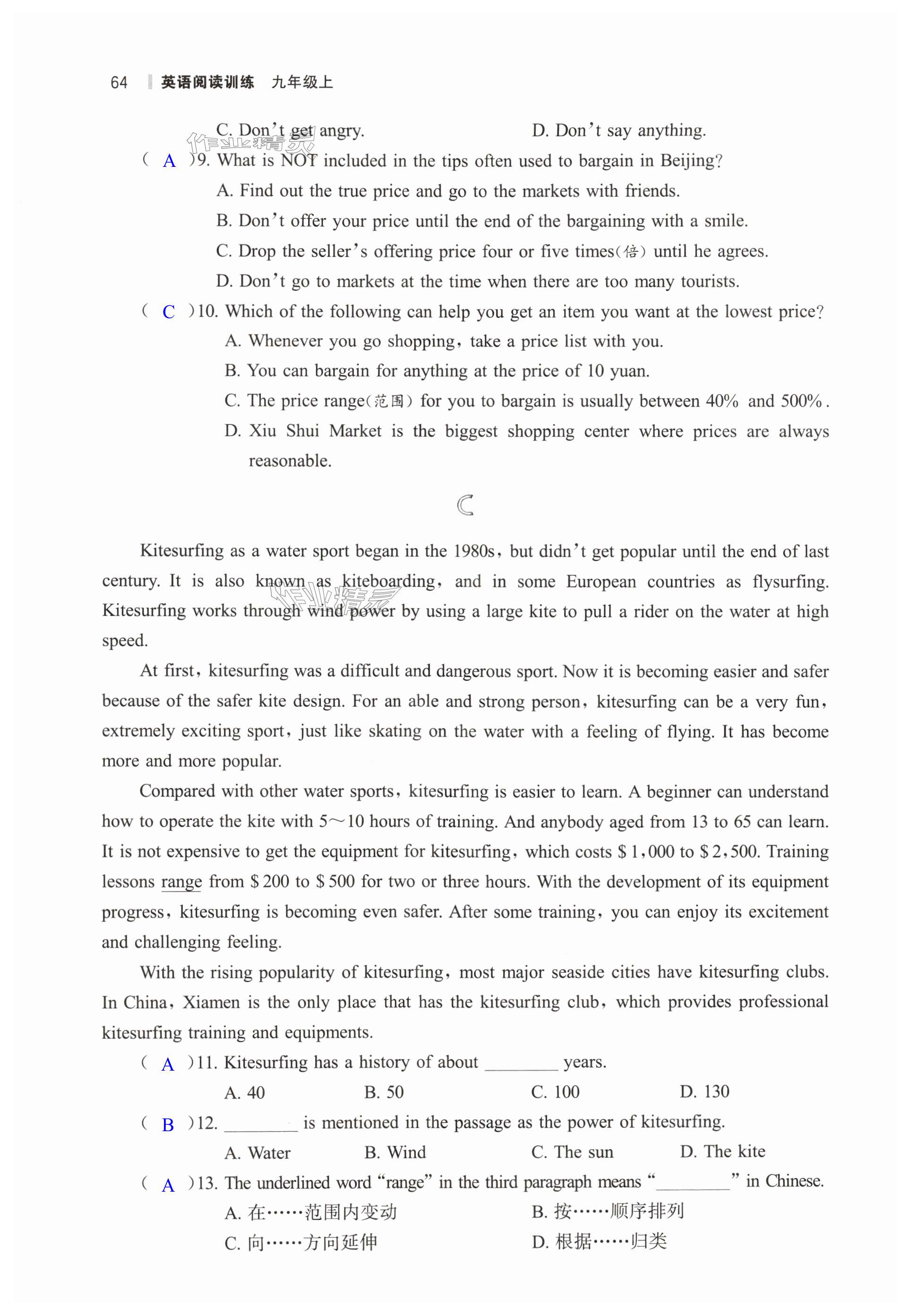 注:目前有些书本章节名称可能整理的还不是很完善,但都是按照顺序排列的,请同学们按照顺序仔细查找。练习册 2024年读无忧英语阅读训练九年级上册人教版 答案主要是用来给同学们做完题方便对答案用的,请勿直接抄袭。
