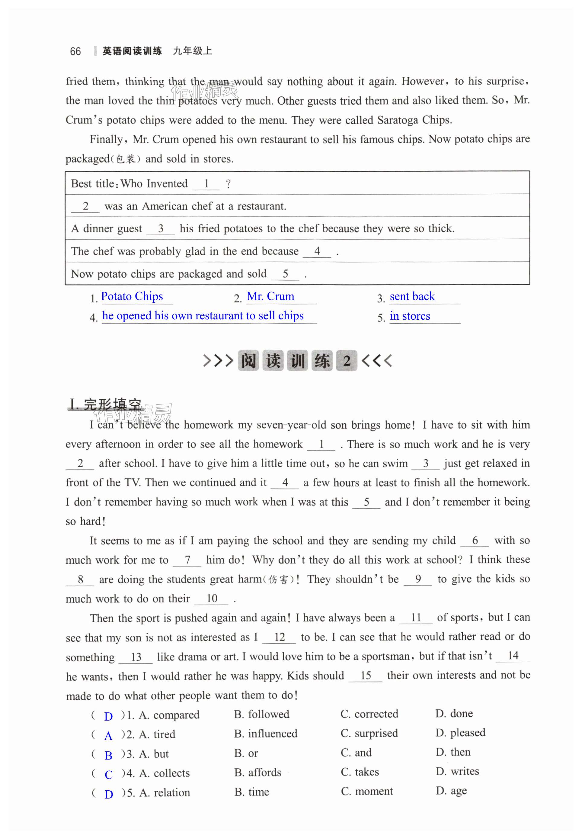注:目前有些书本章节名称可能整理的还不是很完善,但都是按照顺序排列的,请同学们按照顺序仔细查找。练习册 2024年读无忧英语阅读训练九年级上册人教版 答案主要是用来给同学们做完题方便对答案用的,请勿直接抄袭。