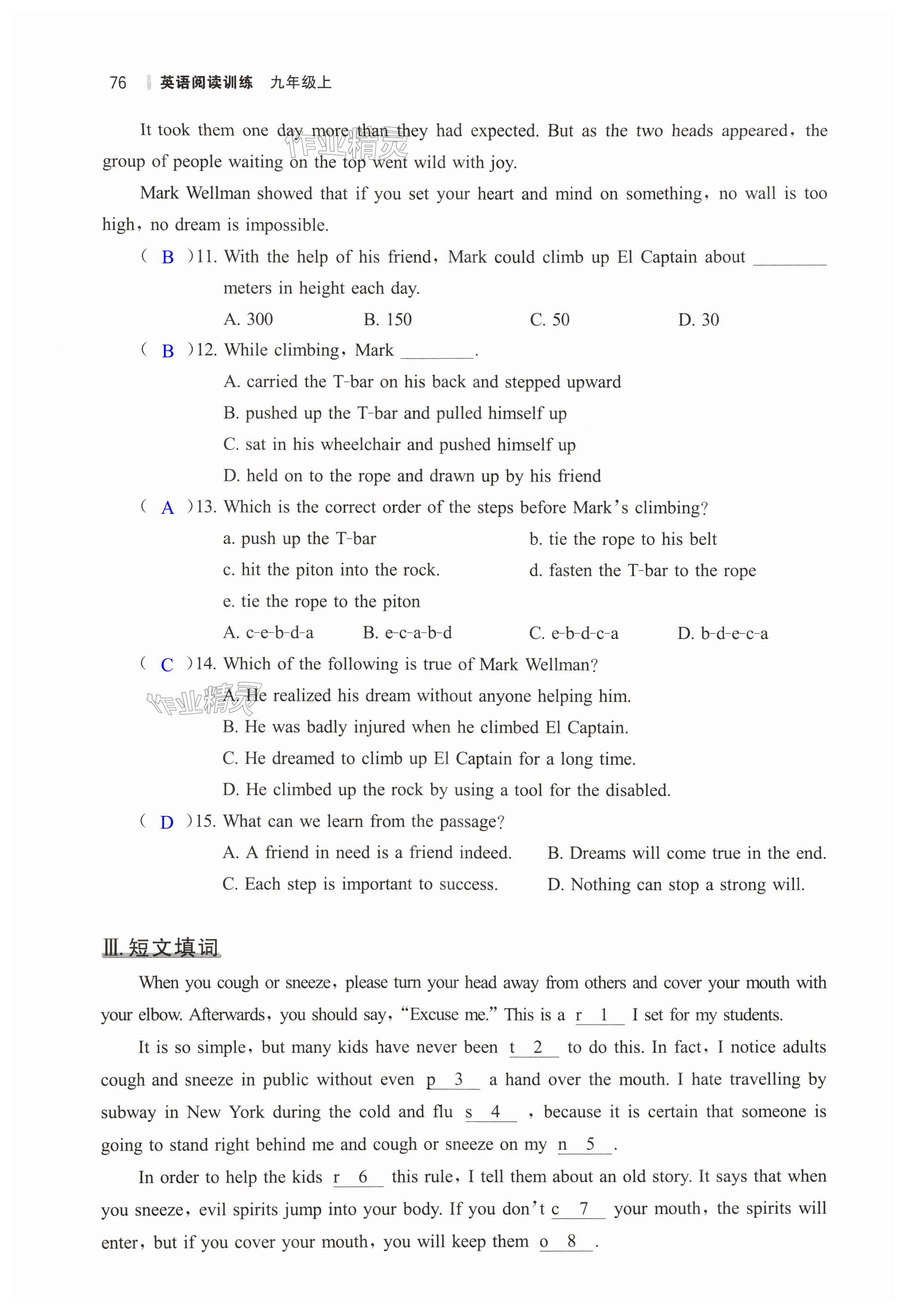 注:目前有些书本章节名称可能整理的还不是很完善,但都是按照顺序排列的,请同学们按照顺序仔细查找。练习册 2024年读无忧英语阅读训练九年级上册人教版 答案主要是用来给同学们做完题方便对答案用的,请勿直接抄袭。