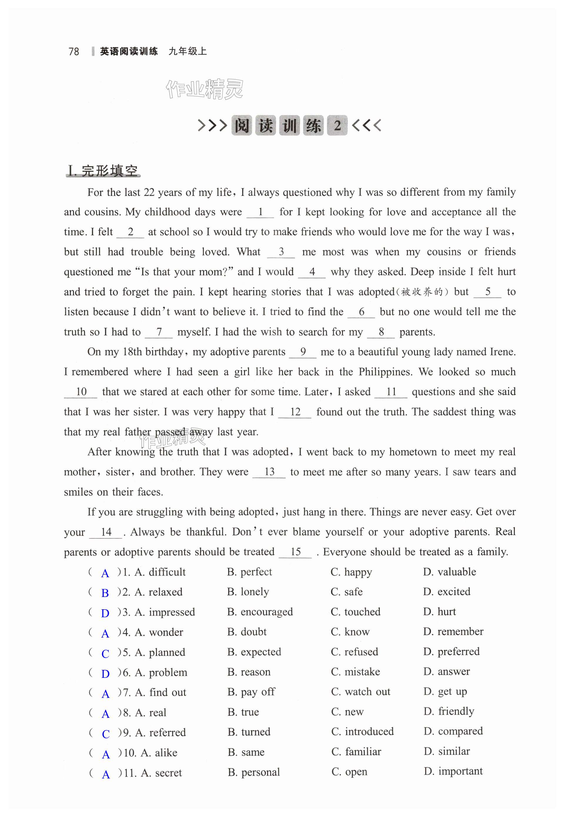 注:目前有些书本章节名称可能整理的还不是很完善,但都是按照顺序排列的,请同学们按照顺序仔细查找。练习册 2024年读无忧英语阅读训练九年级上册人教版 答案主要是用来给同学们做完题方便对答案用的,请勿直接抄袭。