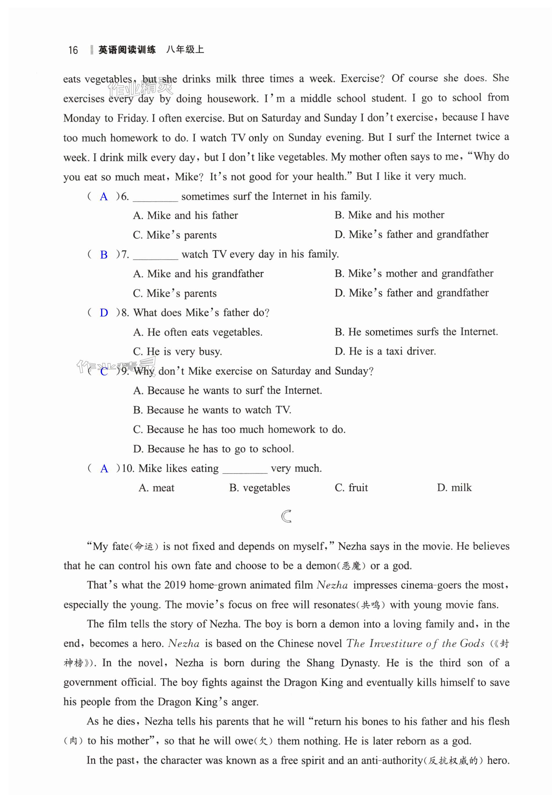 注:目前有些书本章节名称可能整理的还不是很完善,但都是按照顺序排列的,请同学们按照顺序仔细查找。练习册 2024年读无忧英语阅读训练八年级人教版 答案主要是用来给同学们做完题方便对答案用的,请勿直接抄袭。