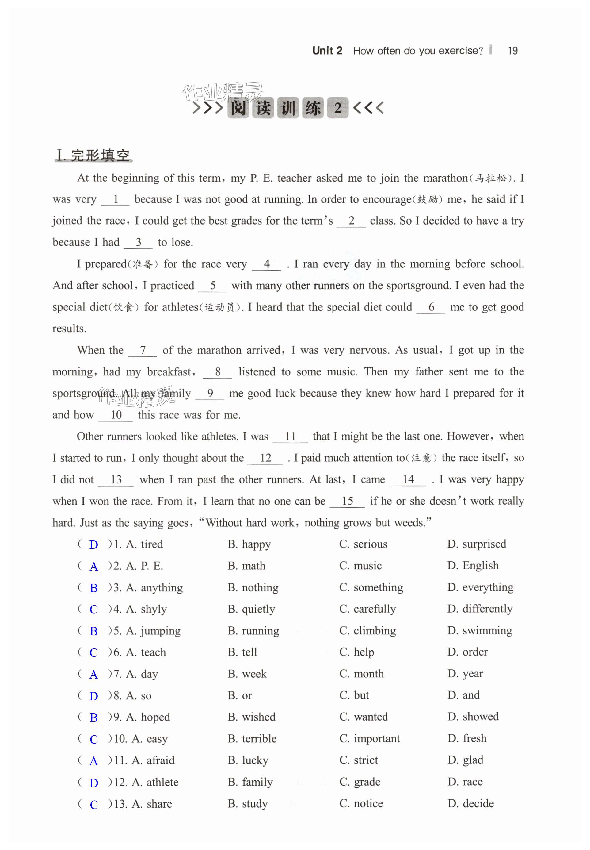 注:目前有些书本章节名称可能整理的还不是很完善,但都是按照顺序排列的,请同学们按照顺序仔细查找。练习册 2024年读无忧英语阅读训练八年级人教版 答案主要是用来给同学们做完题方便对答案用的,请勿直接抄袭。