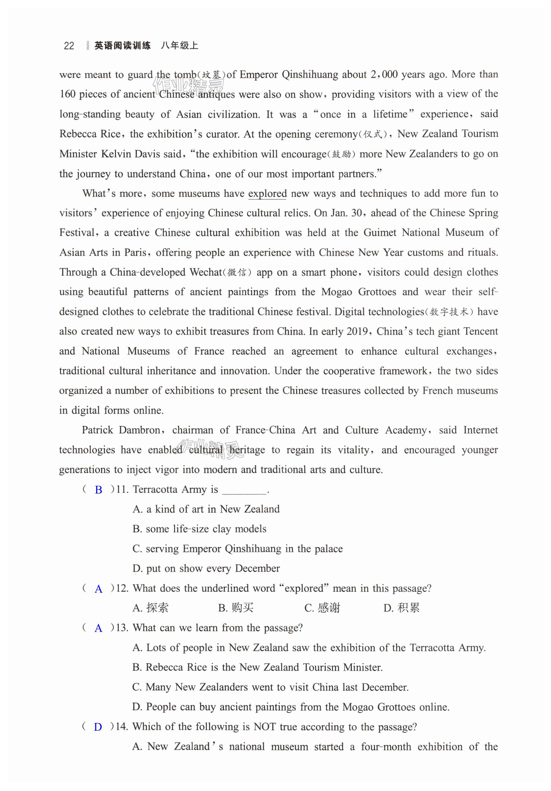 注:目前有些书本章节名称可能整理的还不是很完善,但都是按照顺序排列的,请同学们按照顺序仔细查找。练习册 2024年读无忧英语阅读训练八年级人教版 答案主要是用来给同学们做完题方便对答案用的,请勿直接抄袭。