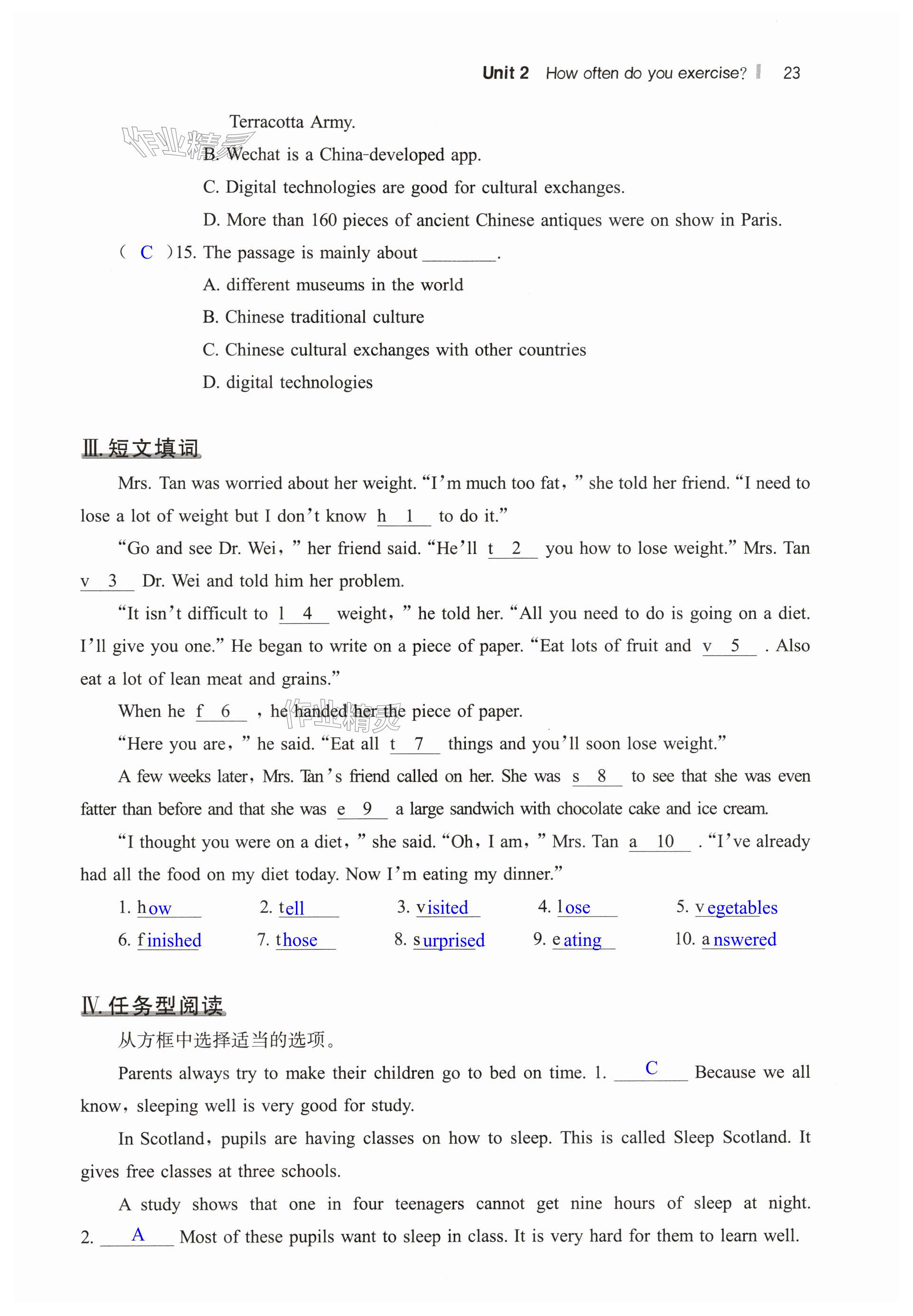 注:目前有些书本章节名称可能整理的还不是很完善,但都是按照顺序排列的,请同学们按照顺序仔细查找。练习册 2024年读无忧英语阅读训练八年级人教版 答案主要是用来给同学们做完题方便对答案用的,请勿直接抄袭。