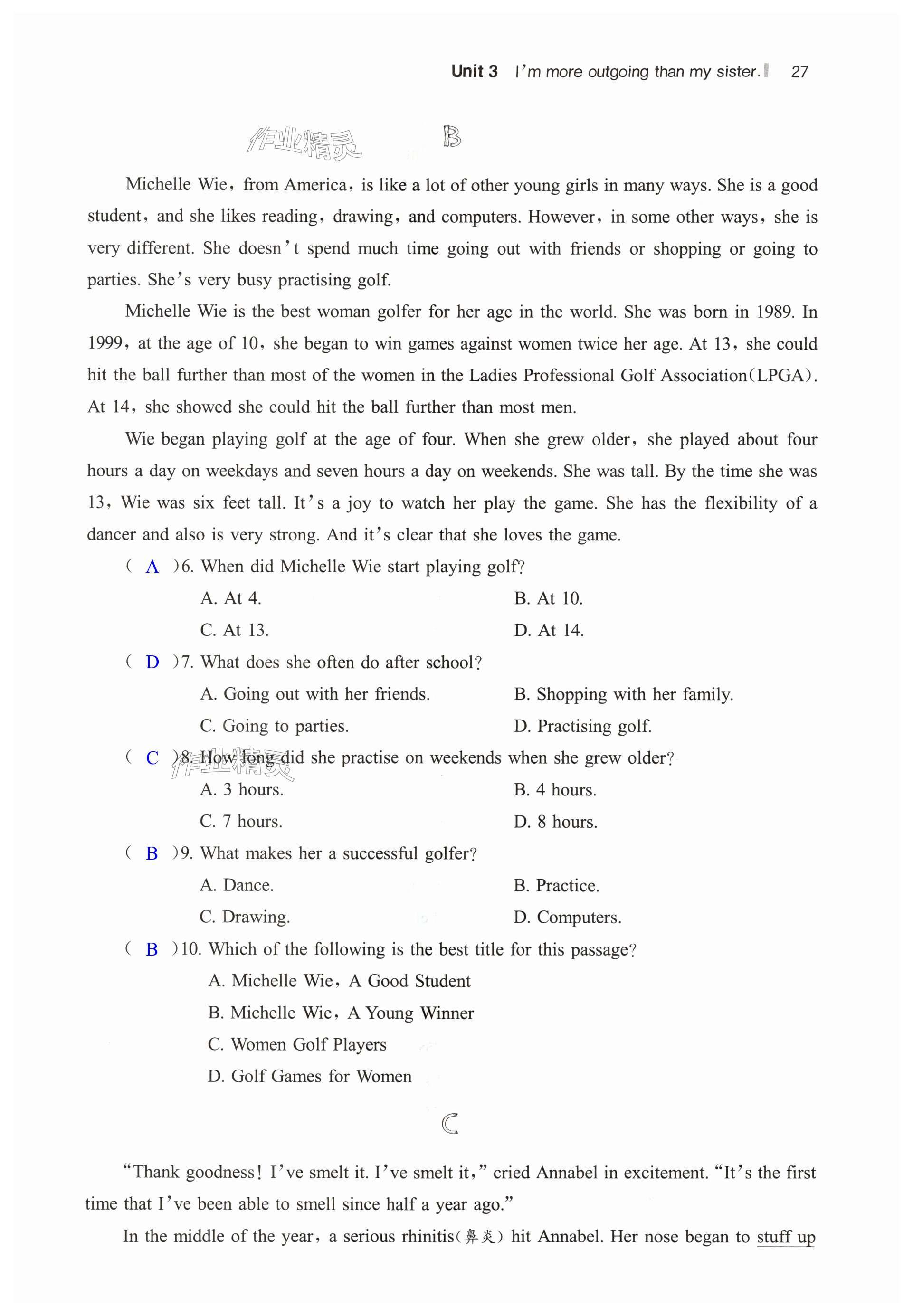 注:目前有些书本章节名称可能整理的还不是很完善,但都是按照顺序排列的,请同学们按照顺序仔细查找。练习册 2024年读无忧英语阅读训练八年级人教版 答案主要是用来给同学们做完题方便对答案用的,请勿直接抄袭。