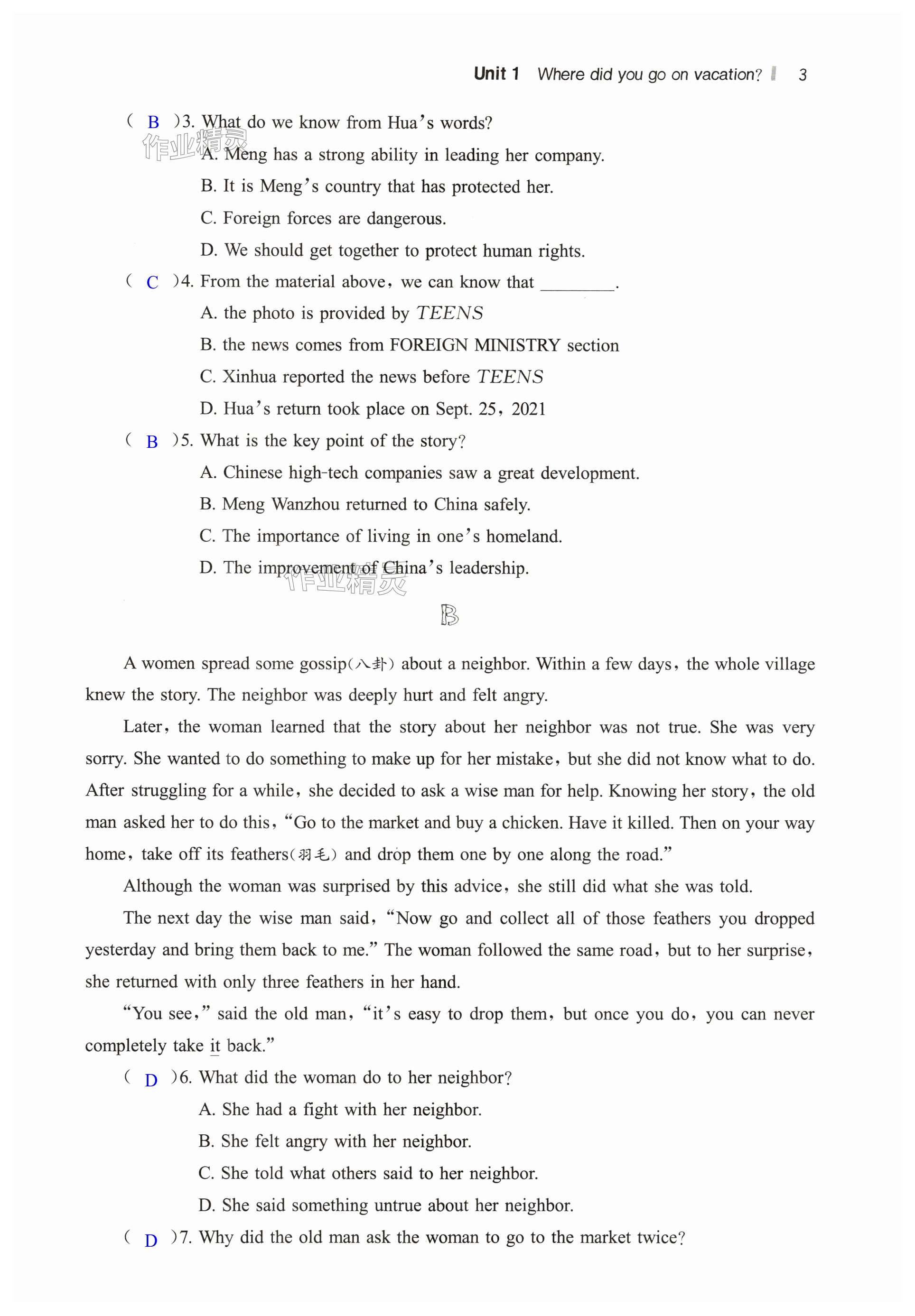注:目前有些书本章节名称可能整理的还不是很完善,但都是按照顺序排列的,请同学们按照顺序仔细查找。练习册 2024年读无忧英语阅读训练八年级人教版 答案主要是用来给同学们做完题方便对答案用的,请勿直接抄袭。
