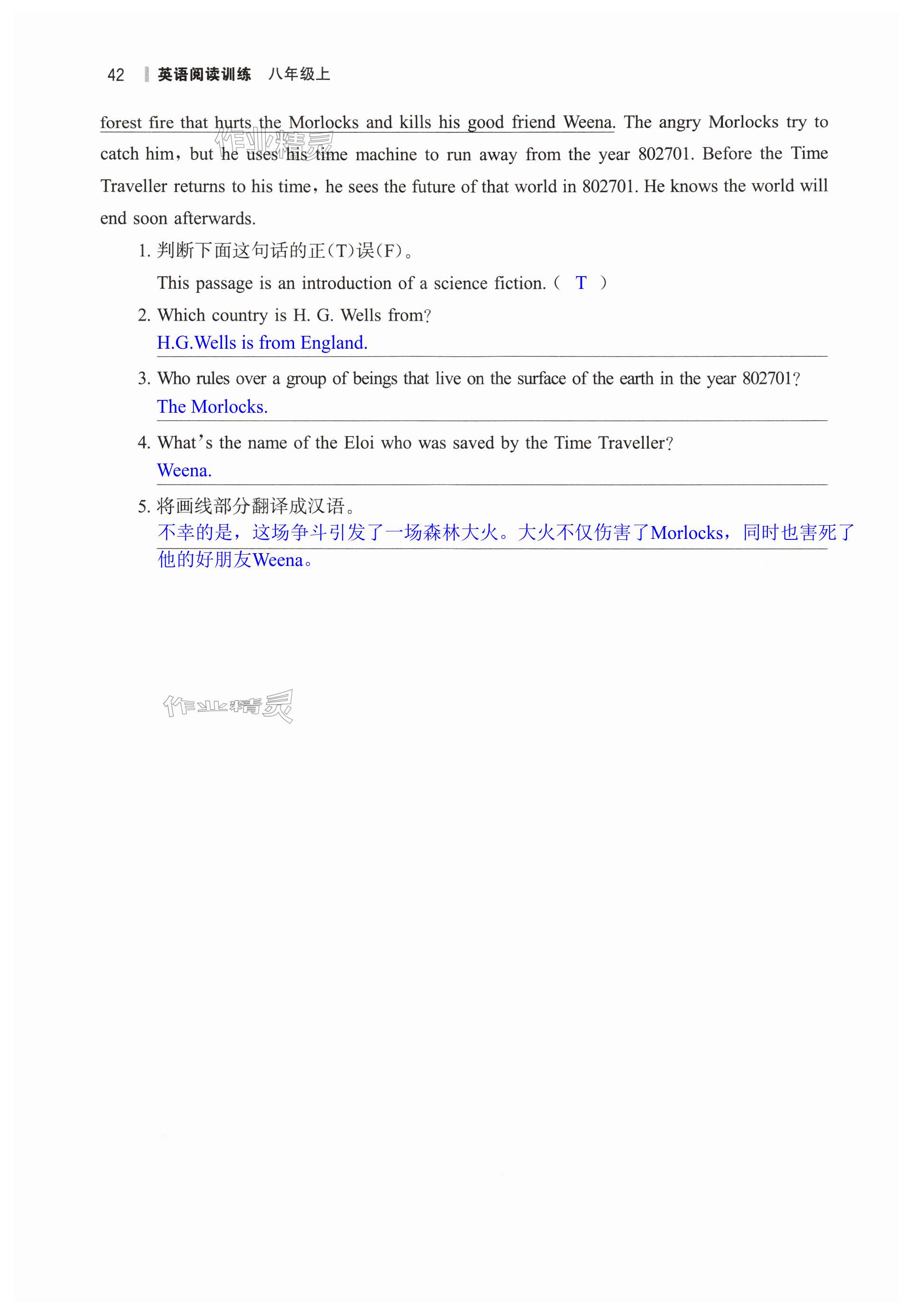 注:目前有些书本章节名称可能整理的还不是很完善,但都是按照顺序排列的,请同学们按照顺序仔细查找。练习册 2024年读无忧英语阅读训练八年级人教版 答案主要是用来给同学们做完题方便对答案用的,请勿直接抄袭。