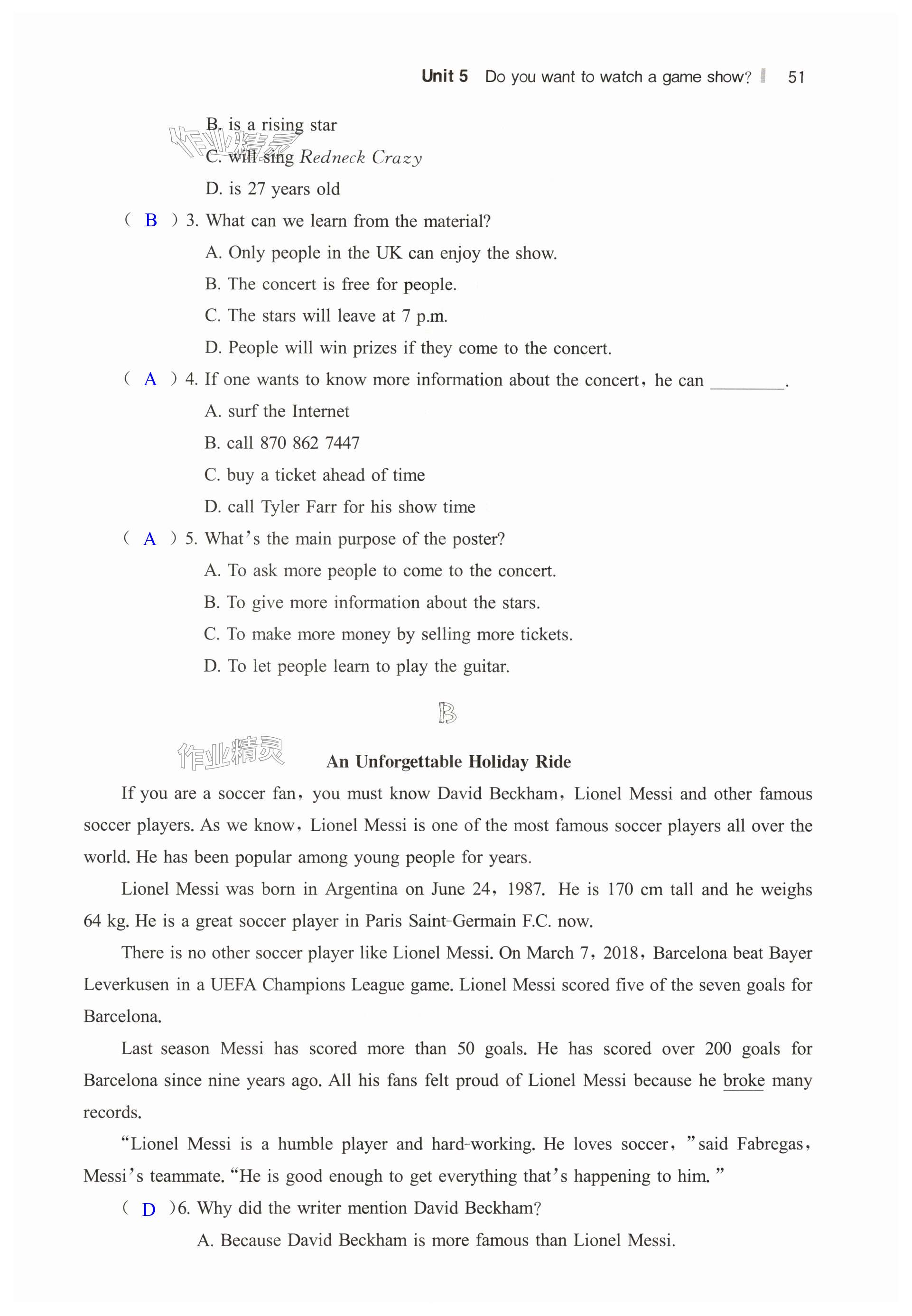 注:目前有些书本章节名称可能整理的还不是很完善,但都是按照顺序排列的,请同学们按照顺序仔细查找。练习册 2024年读无忧英语阅读训练八年级人教版 答案主要是用来给同学们做完题方便对答案用的,请勿直接抄袭。