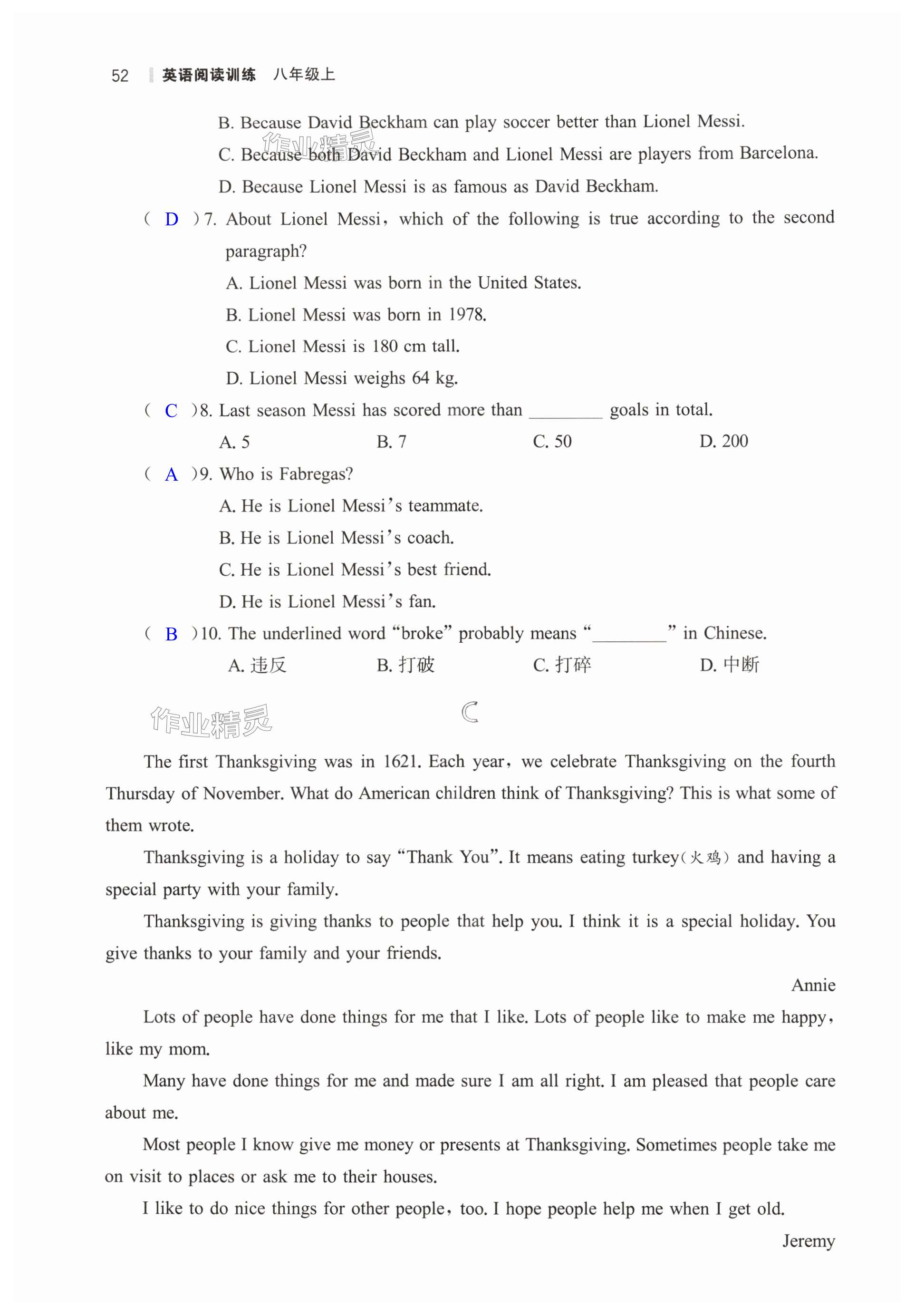 注:目前有些书本章节名称可能整理的还不是很完善,但都是按照顺序排列的,请同学们按照顺序仔细查找。练习册 2024年读无忧英语阅读训练八年级人教版 答案主要是用来给同学们做完题方便对答案用的,请勿直接抄袭。