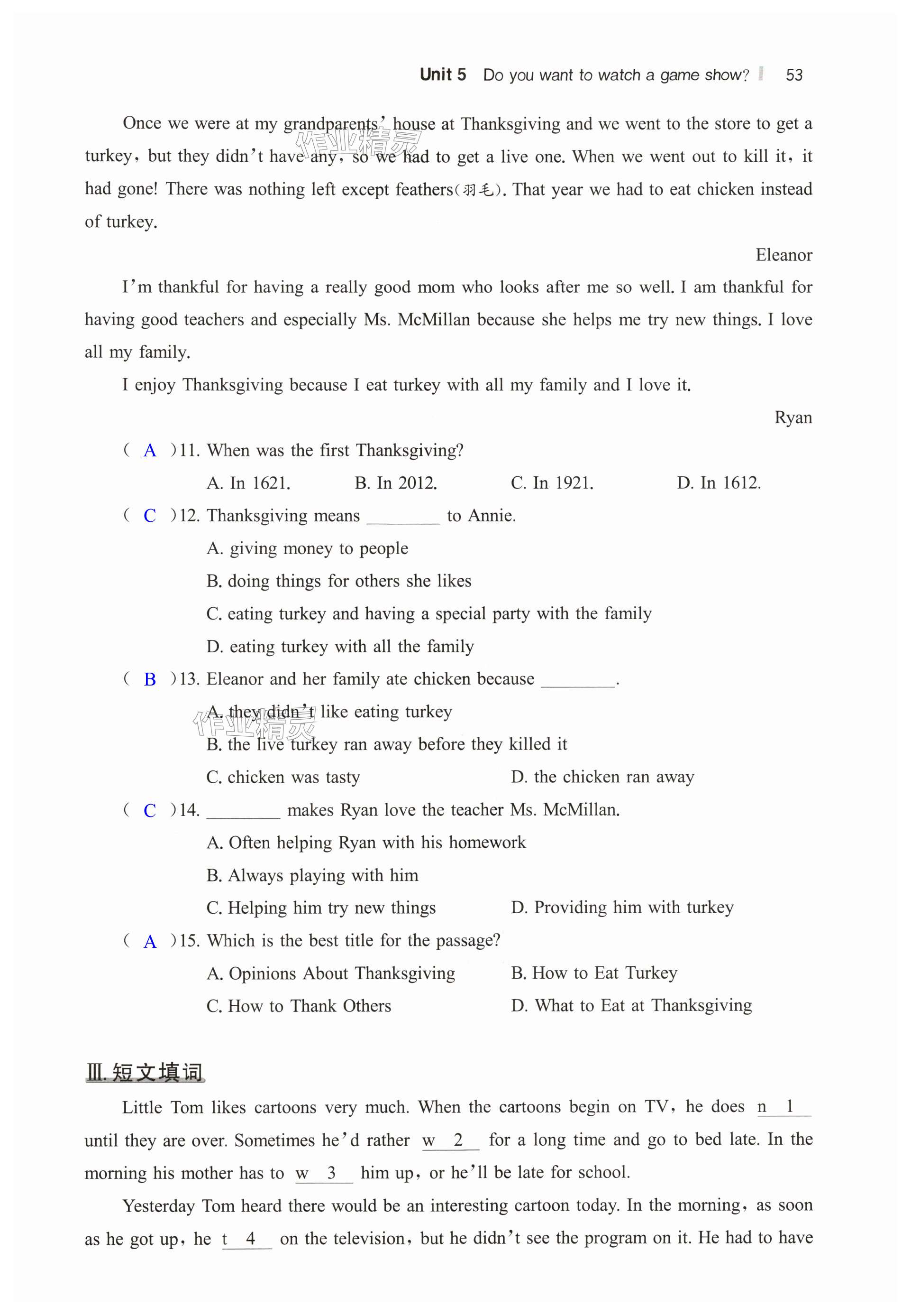 注:目前有些书本章节名称可能整理的还不是很完善,但都是按照顺序排列的,请同学们按照顺序仔细查找。练习册 2024年读无忧英语阅读训练八年级人教版 答案主要是用来给同学们做完题方便对答案用的,请勿直接抄袭。