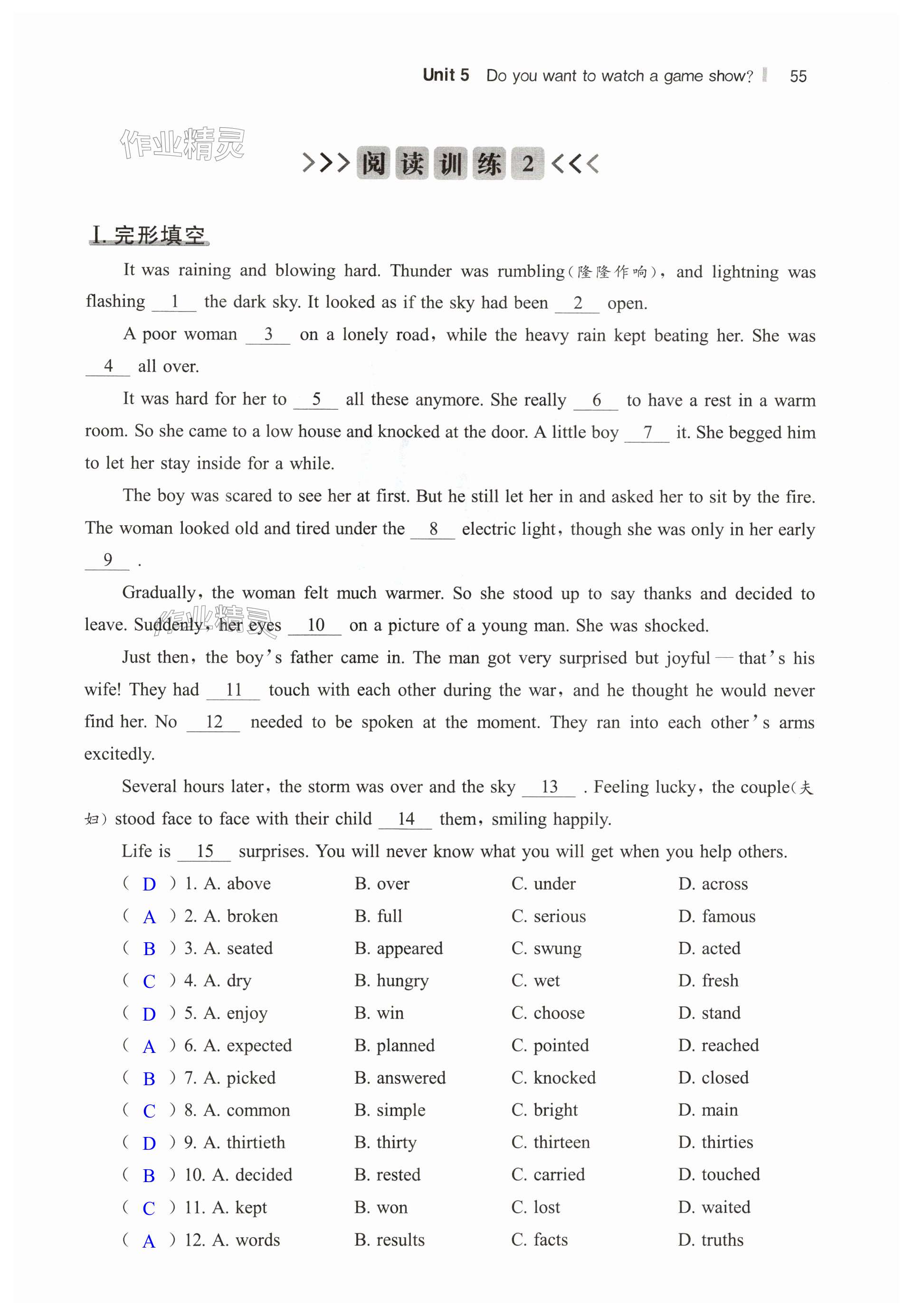 注:目前有些书本章节名称可能整理的还不是很完善,但都是按照顺序排列的,请同学们按照顺序仔细查找。练习册 2024年读无忧英语阅读训练八年级人教版 答案主要是用来给同学们做完题方便对答案用的,请勿直接抄袭。