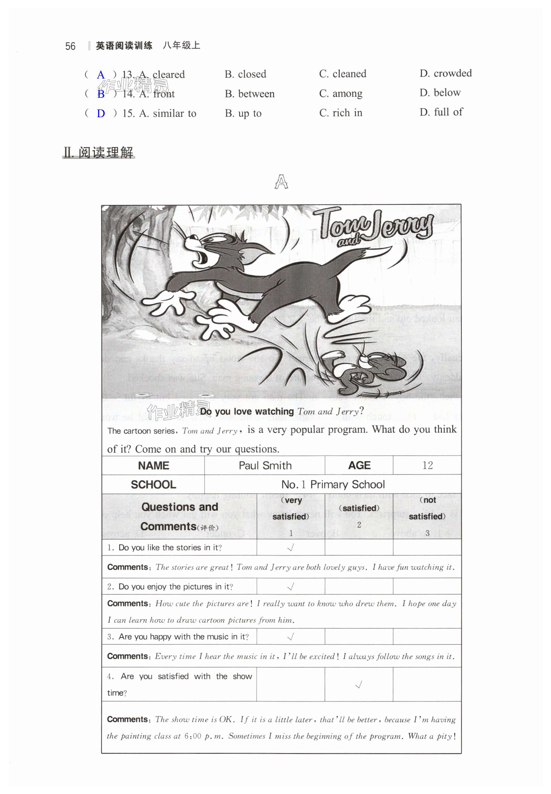 注:目前有些书本章节名称可能整理的还不是很完善,但都是按照顺序排列的,请同学们按照顺序仔细查找。练习册 2024年读无忧英语阅读训练八年级人教版 答案主要是用来给同学们做完题方便对答案用的,请勿直接抄袭。