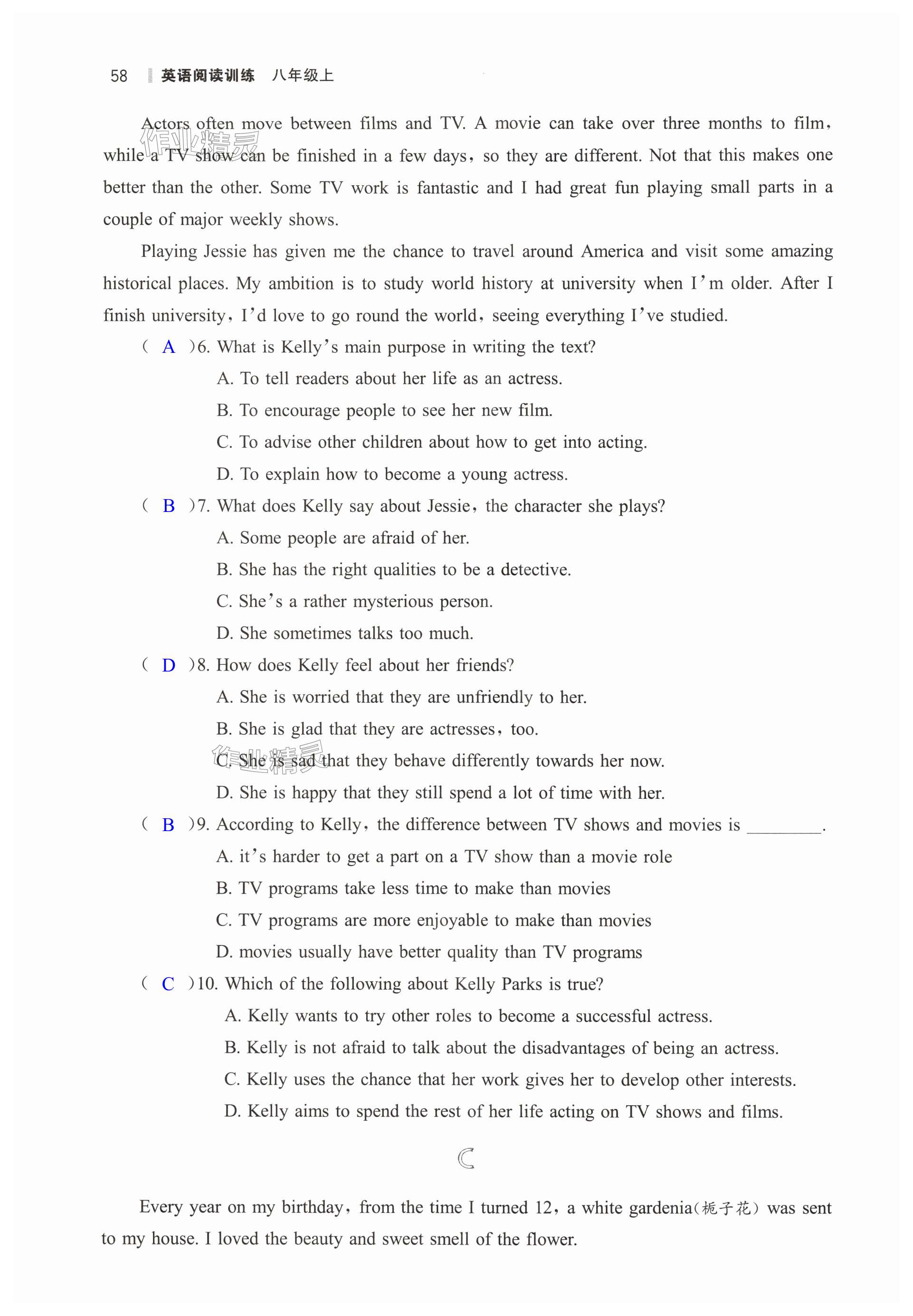 注:目前有些书本章节名称可能整理的还不是很完善,但都是按照顺序排列的,请同学们按照顺序仔细查找。练习册 2024年读无忧英语阅读训练八年级人教版 答案主要是用来给同学们做完题方便对答案用的,请勿直接抄袭。