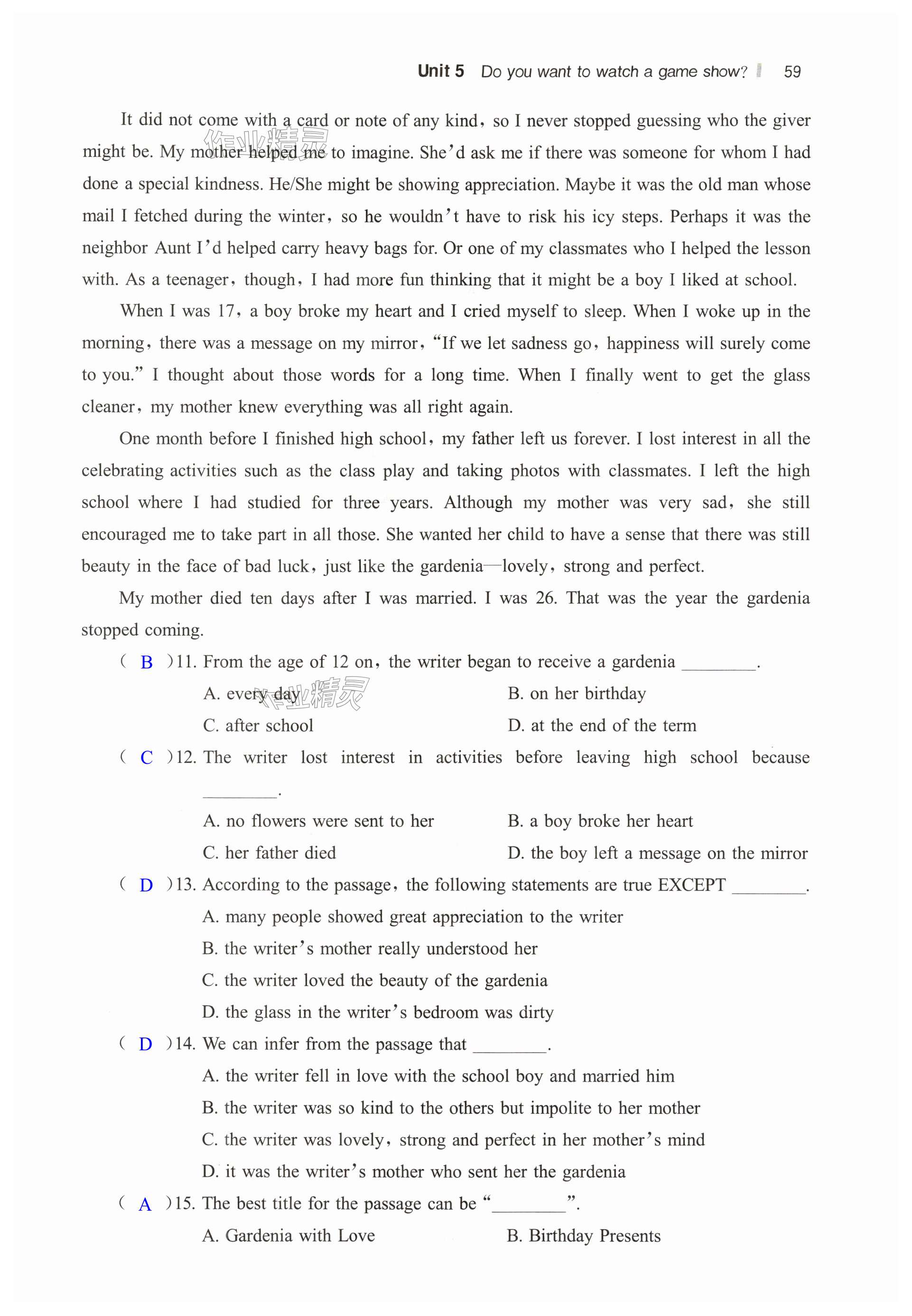 注:目前有些书本章节名称可能整理的还不是很完善,但都是按照顺序排列的,请同学们按照顺序仔细查找。练习册 2024年读无忧英语阅读训练八年级人教版 答案主要是用来给同学们做完题方便对答案用的,请勿直接抄袭。