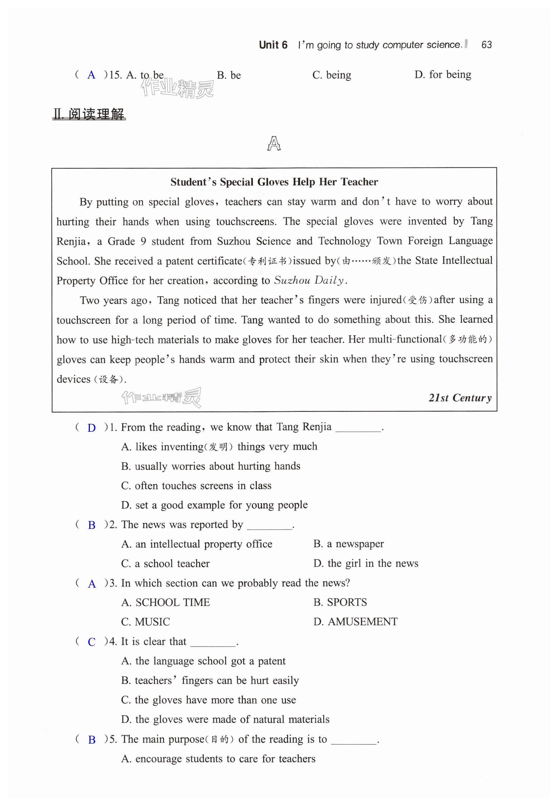 注:目前有些书本章节名称可能整理的还不是很完善,但都是按照顺序排列的,请同学们按照顺序仔细查找。练习册 2024年读无忧英语阅读训练八年级人教版 答案主要是用来给同学们做完题方便对答案用的,请勿直接抄袭。