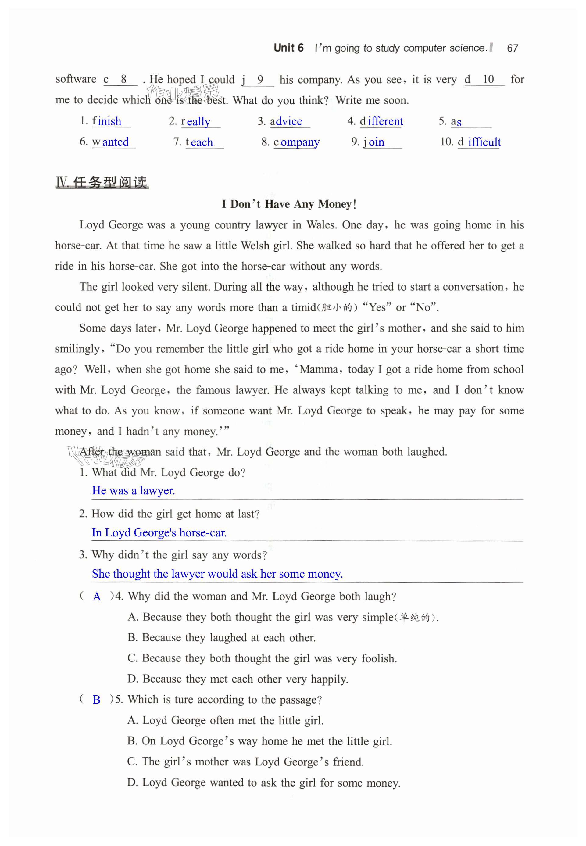 注:目前有些书本章节名称可能整理的还不是很完善,但都是按照顺序排列的,请同学们按照顺序仔细查找。练习册 2024年读无忧英语阅读训练八年级人教版 答案主要是用来给同学们做完题方便对答案用的,请勿直接抄袭。