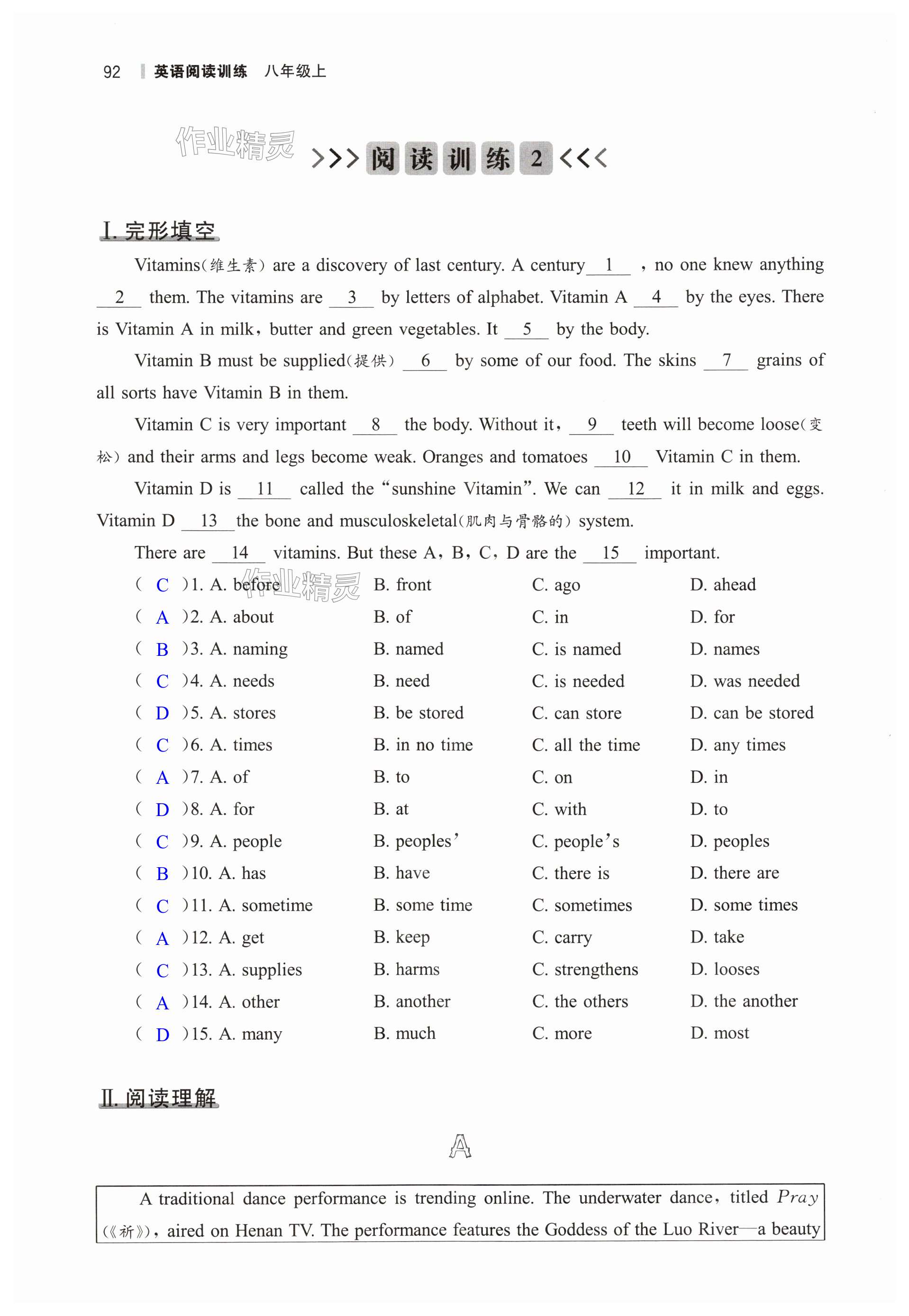 注:目前有些书本章节名称可能整理的还不是很完善,但都是按照顺序排列的,请同学们按照顺序仔细查找。练习册 2024年读无忧英语阅读训练八年级人教版 答案主要是用来给同学们做完题方便对答案用的,请勿直接抄袭。