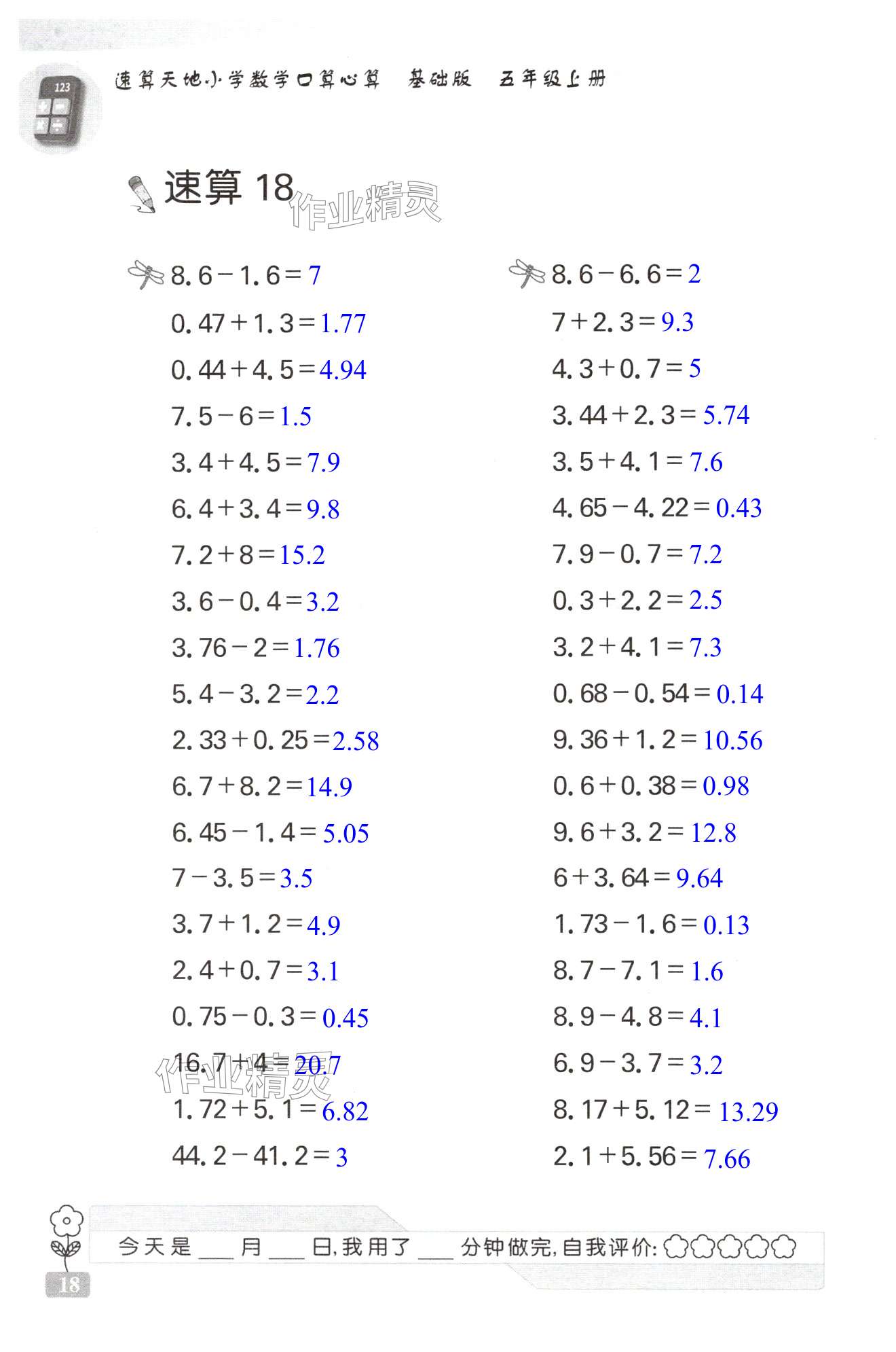2024年速算天地小学数学口算心算五年级上册苏科版基础版