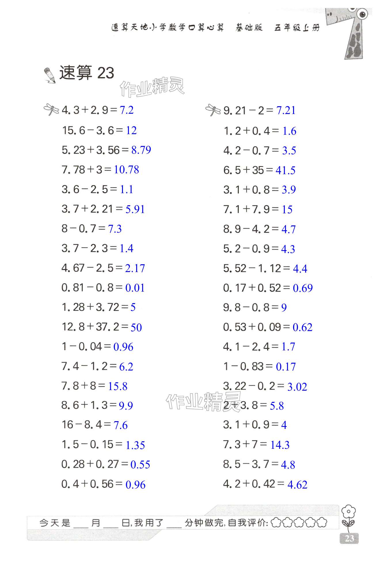2024年速算天地小学数学口算心算五年级上册苏科版基础版