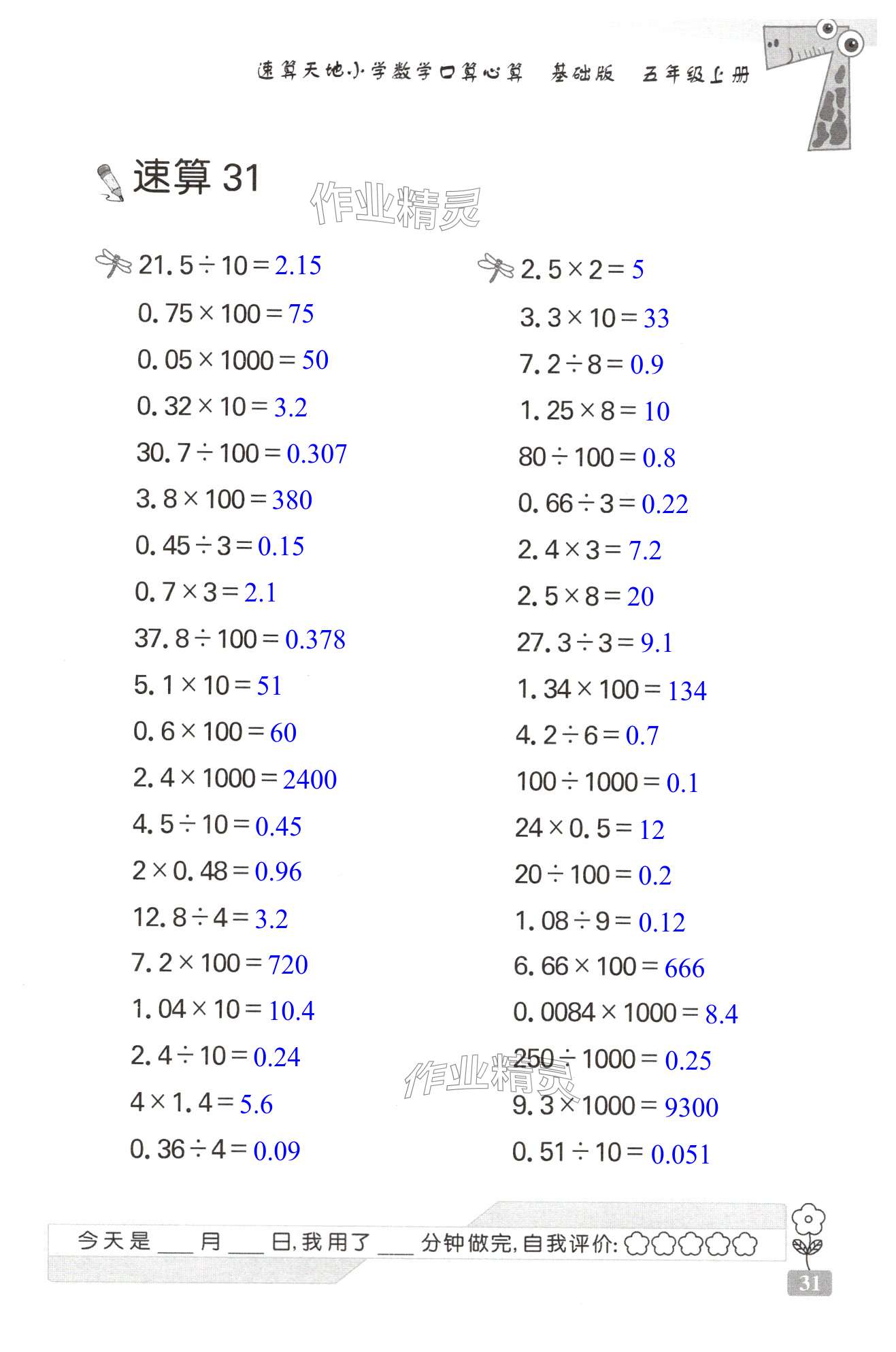 2024年速算天地小学数学口算心算五年级上册苏科版基础版