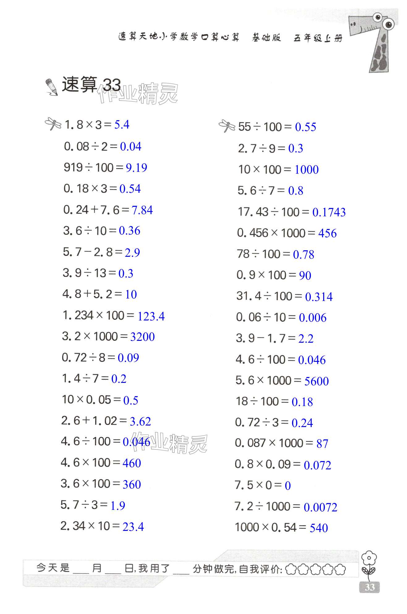 2024年速算天地小学数学口算心算五年级上册苏科版基础版