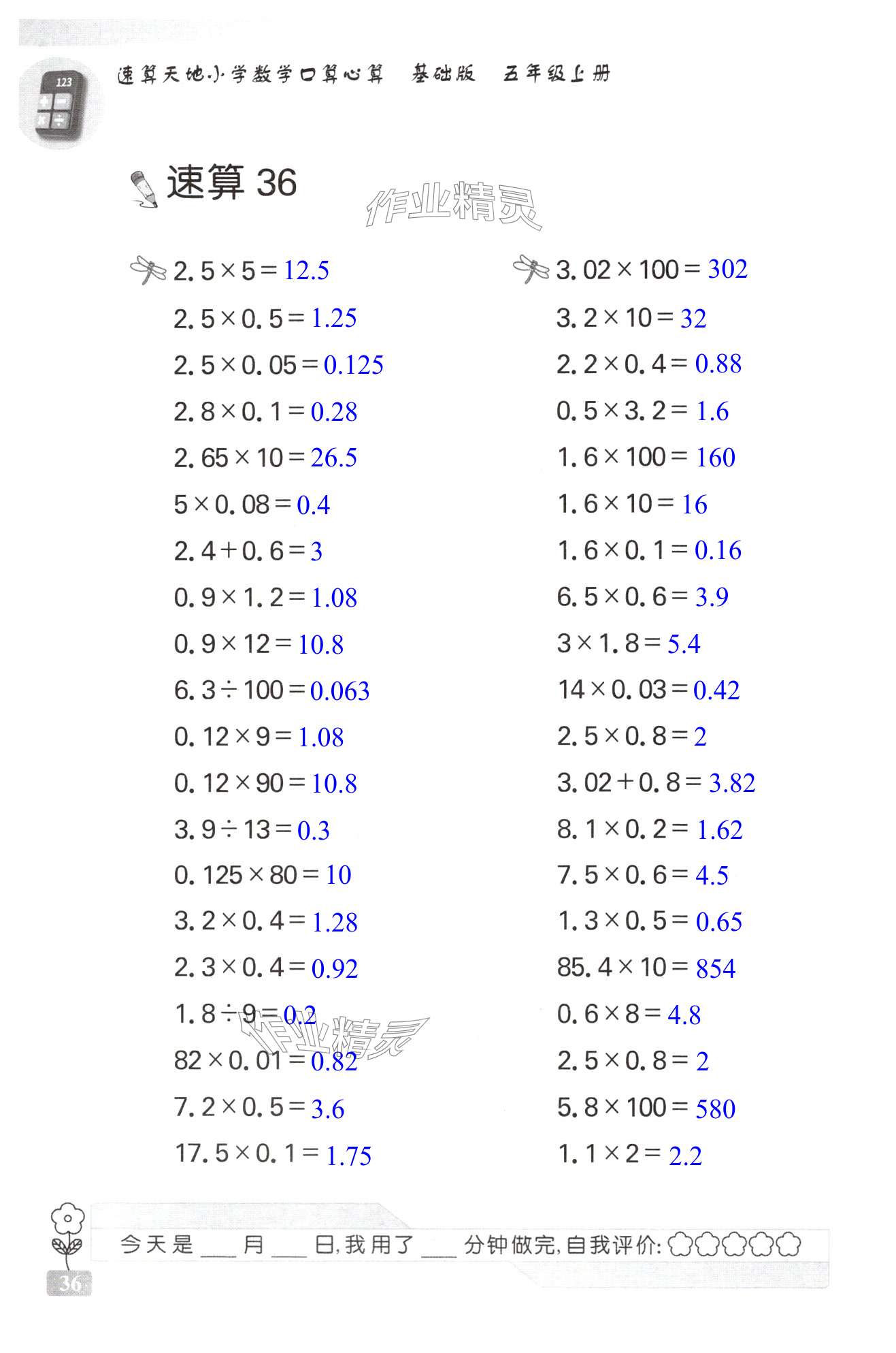 2024年速算天地小学数学口算心算五年级上册苏科版基础版