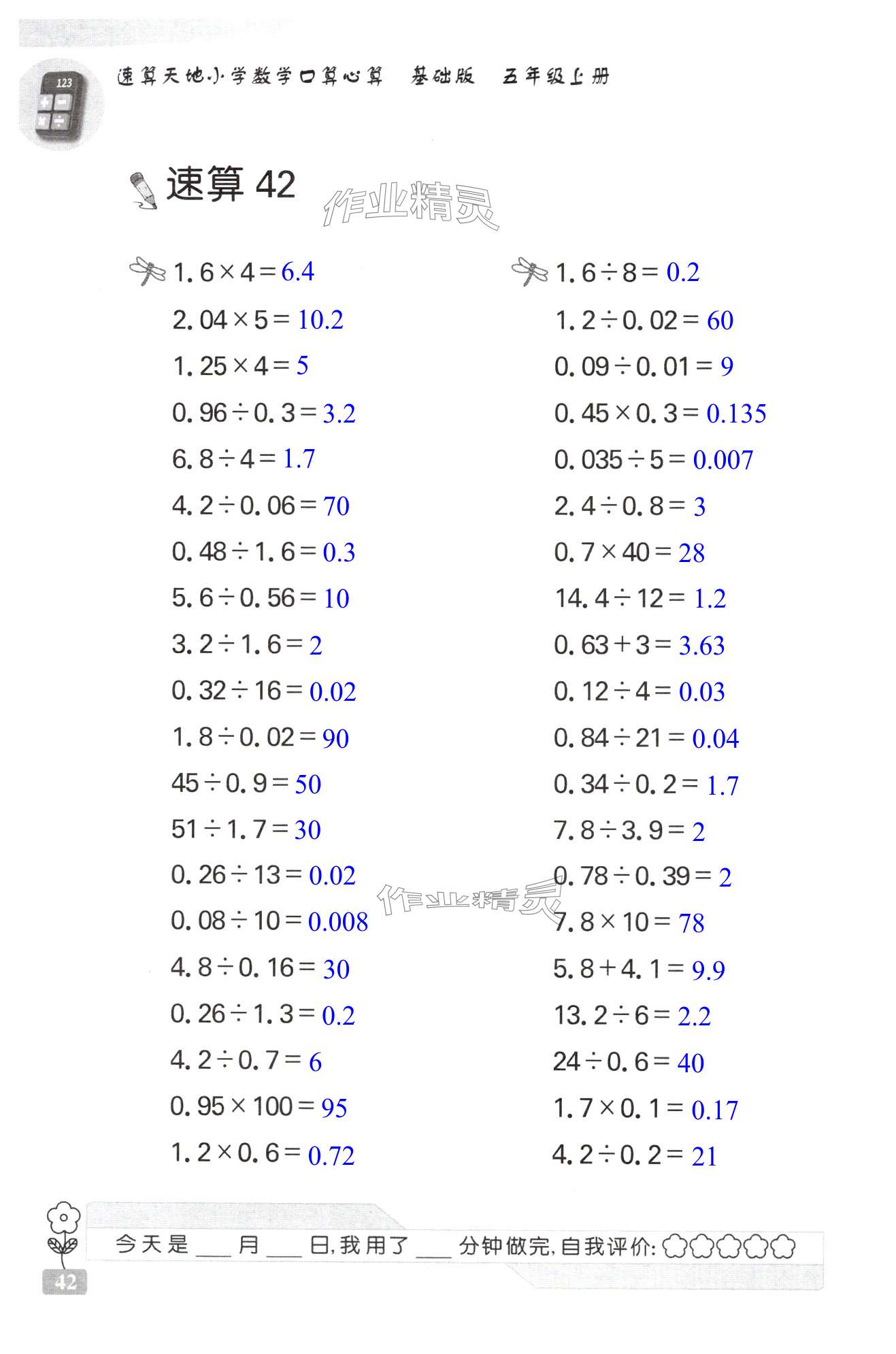 2024年速算天地小学数学口算心算五年级上册苏科版基础版