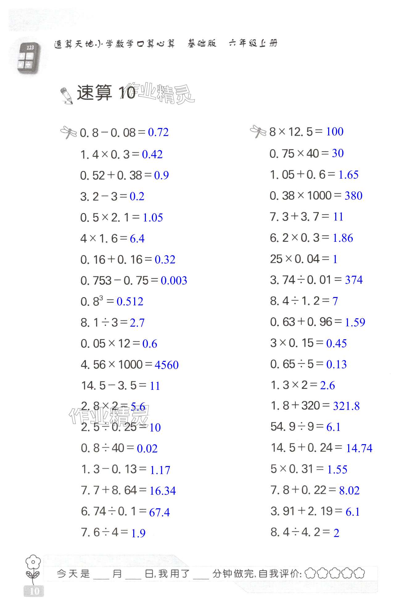 2024年速算天地小学数学口算心算六年级上册苏科版基础版
