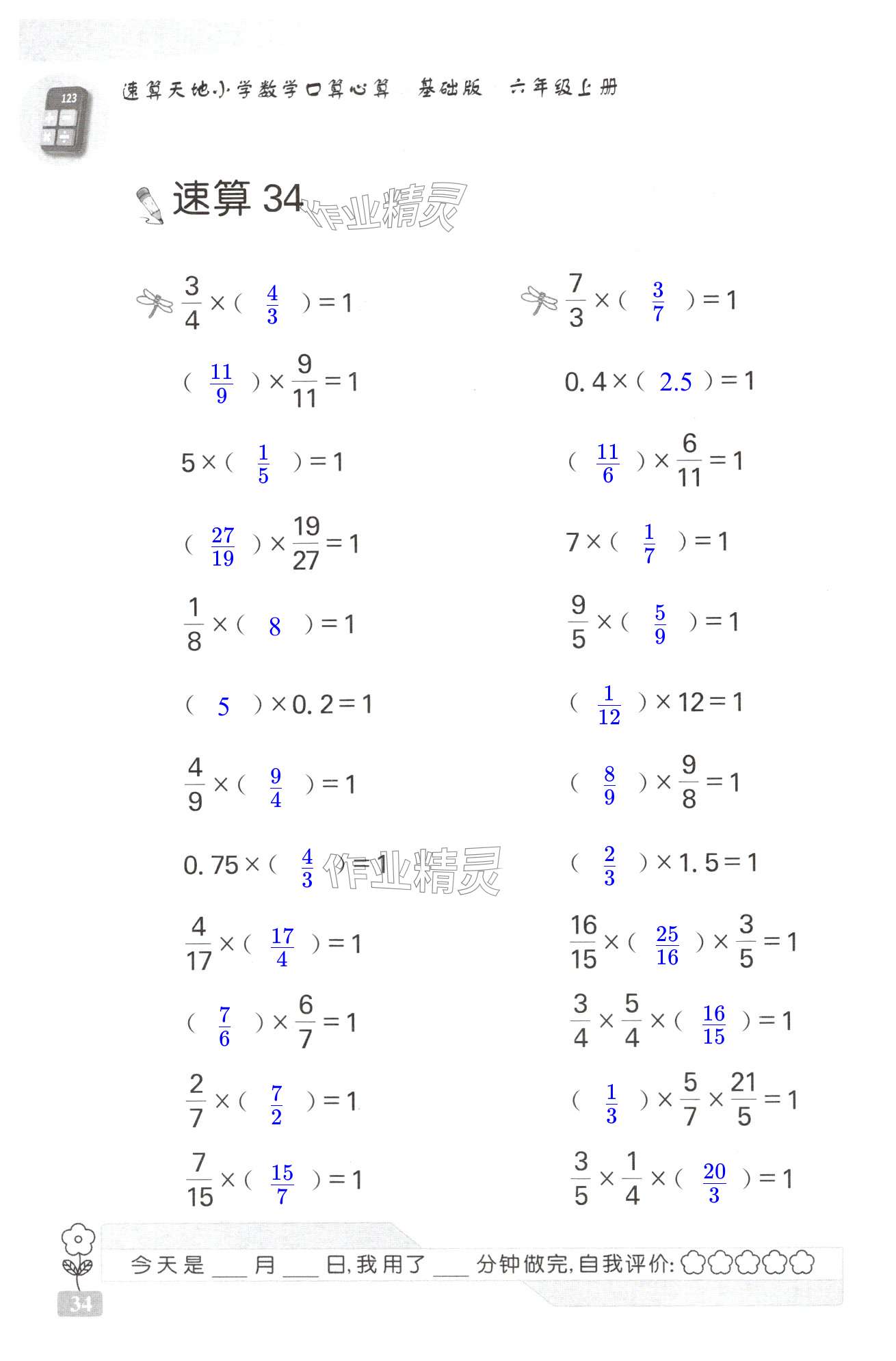 注:目前有些书本章节名称可能整理的还不是很完善,但都是按照顺序排列的,请同学们按照顺序仔细查找。练习册 2024年速算天地小学数学口算心算六年级上册苏科版基础版 答案主要是用来给同学们做完题方便对答案用的,请勿直接抄袭。