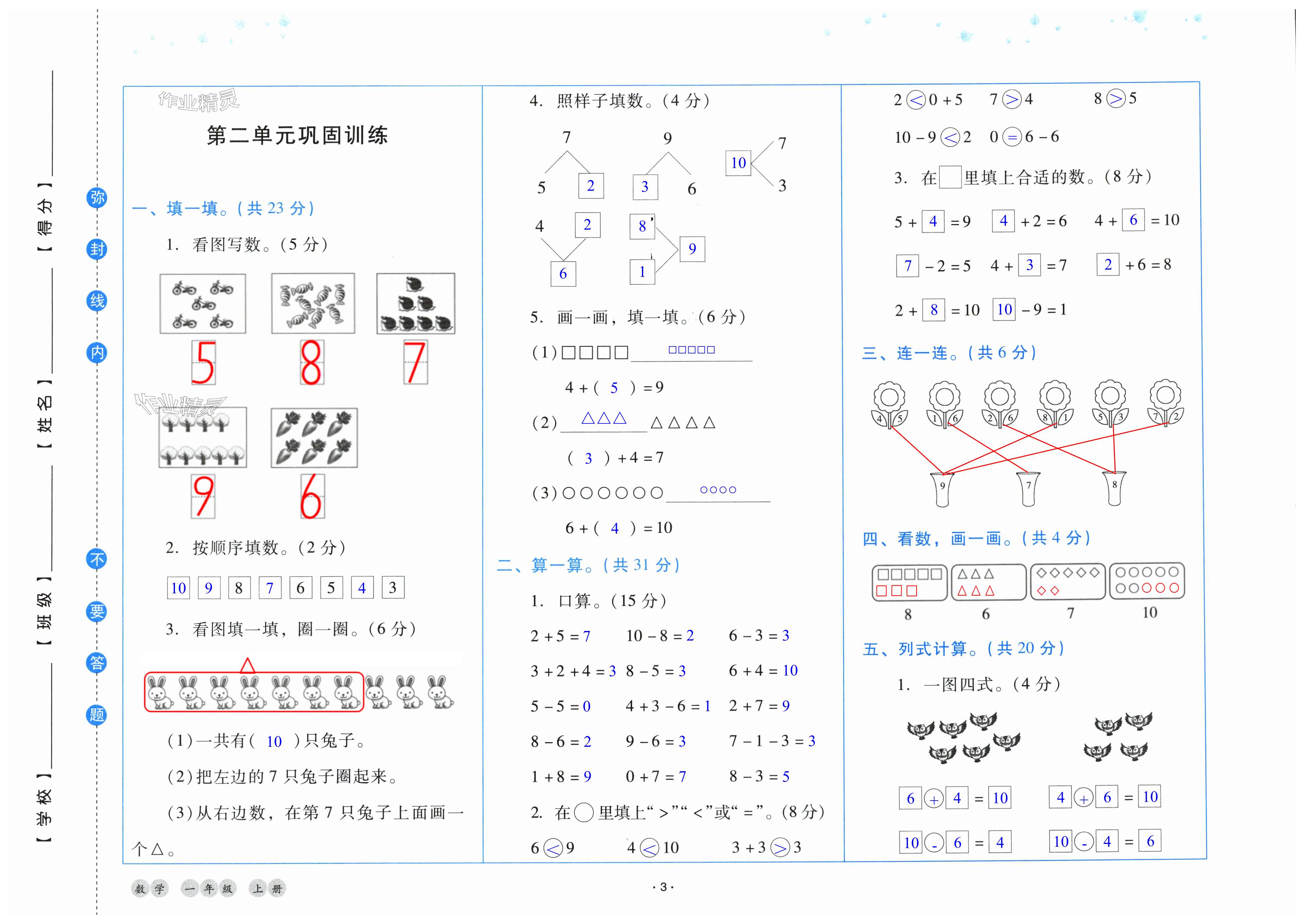 注:目前有些书本章节名称可能整理的还不是很完善,但都是按照顺序排列的,请同学们按照顺序仔细查找。练习册 2024年云南省标准教辅同步指导训练与检测一年级数学上册人教版 答案主要是用来给同学们做完题方便对答案用的,请勿直接抄袭。
