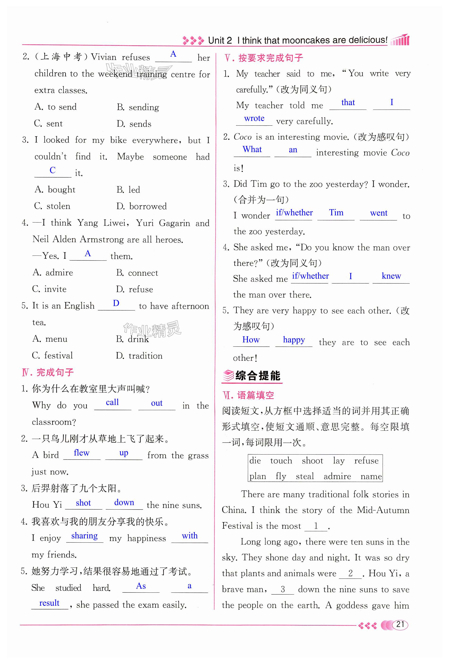 注:目前有些书本章节名称可能整理的还不是很完善,但都是按照顺序排列的,请同学们按照顺序仔细查找。练习册 2024年同步导学案课时练九年级英语全一册人教版河南专版 答案主要是用来给同学们做完题方便对答案用的,请勿直接抄袭。