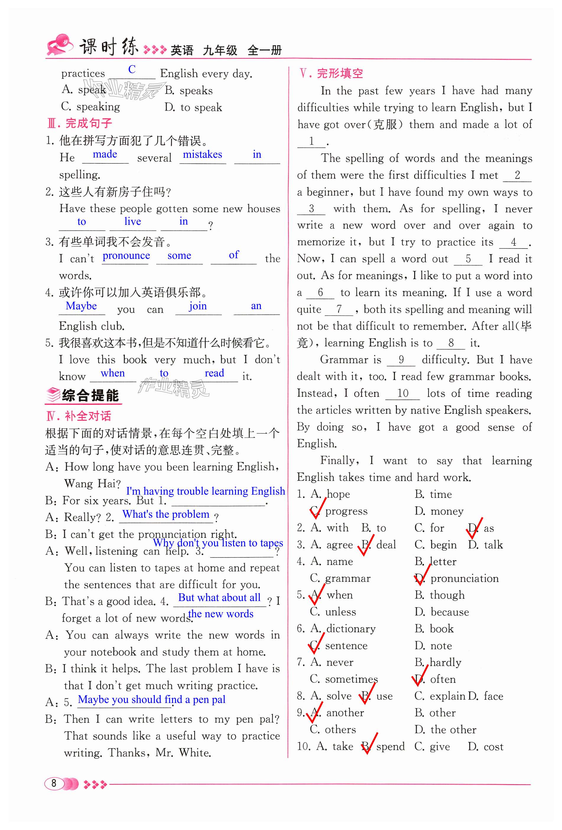 注:目前有些书本章节名称可能整理的还不是很完善,但都是按照顺序排列的,请同学们按照顺序仔细查找。练习册 2024年同步导学案课时练九年级英语全一册人教版河南专版 答案主要是用来给同学们做完题方便对答案用的,请勿直接抄袭。