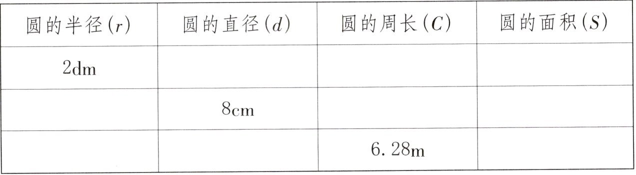 |圆的半径(r)|圆的直径(d)|圆的周长(C)|圆的面积(S)|