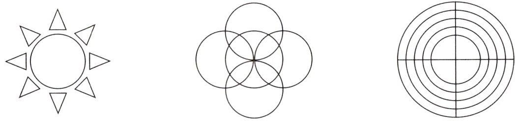 1. 中间圆形为基本图形,周围三角形绕圆心顺时针(或逆时针)依次旋转60°得到。