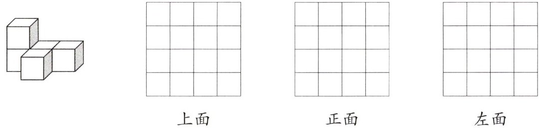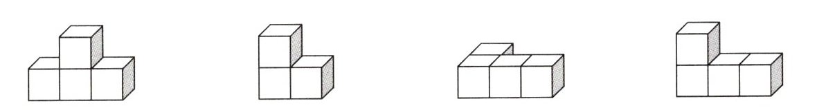 (1)从上面看有 3 个,从左面看有 2 层,所以最少下面一层 3 个,上面一层 1 个,共$3 + 1=4$个。